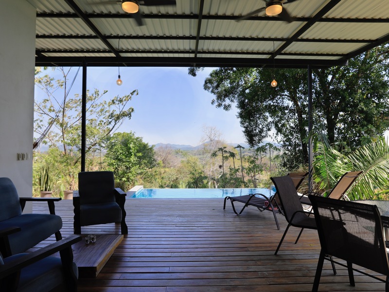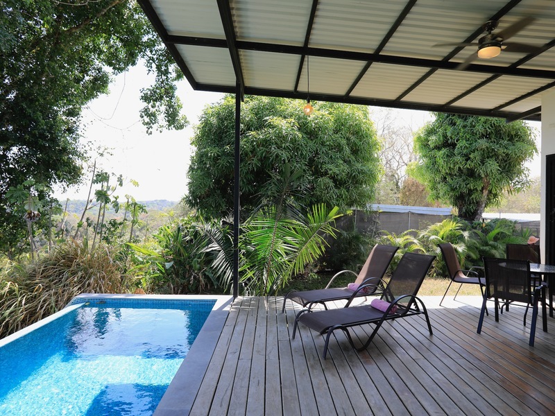 This lovely one-bedroom house is nestled in the hills of Santiago, only a 5-minute drive down to the white-sand surfing beach of Playa Hermosa. The view from the house is gorgeous. From the open-plan living room and kitchen, the bedroom , the deck and the pool you look out across the beautiful valley of Santiago. The house is a comfortable and spacious one-bedroom - with a large kitchen and living area, which opens out onto the deck and pool. There is also a good-sized laundry, with ample storage. The property measures 1,000m2. There is a registered hand-dug well, as well as a rain-catchment system with water storage tanks. The proximity to Hermosa beach and the stunning views, makes this property very attractive. It works well as a long or short-term rental, or as a family home.