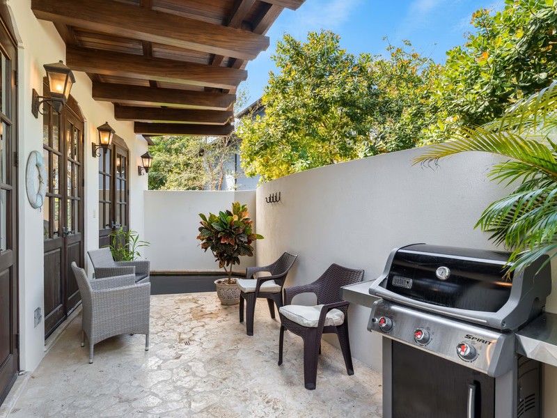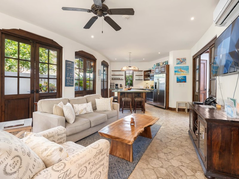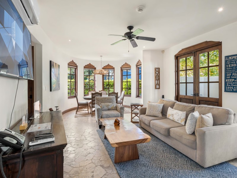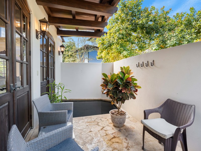 This residence stands out for its unique flat layout and private outdoor living features, offering the comfort of no stairs and seamless indoor-outdoor flow. An open-air terrace with a private plunge pool creates a peaceful retreat in the heart of town. Inside, the open-concept living and dining areas are complemented by an interior courtyard that fills the home with natural light and enhances its warm, inviting atmosphere. The kitchen is beautifully designed with refined details and strong functionality, while both bedrooms are spacious, bright, and crafted for everyday comfort.