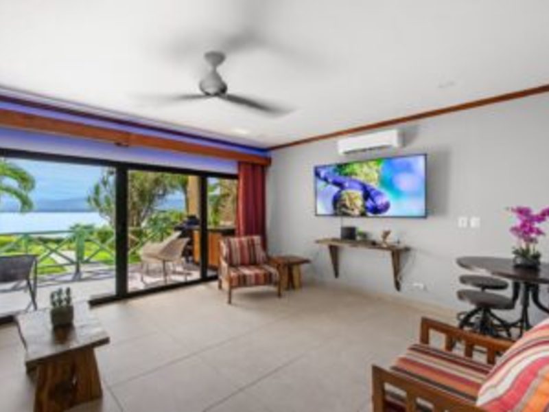 Enjoy morning coffee or evening sunsets from your private veranda while soaking in panoramic views of the Pacific. Inside, you’ll find an open-concept layout with a fully equipped kitchen, inviting dining area, and a bright living room that flows seamlessly onto the oceanview terrace.
