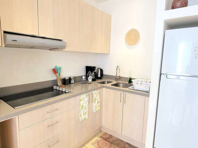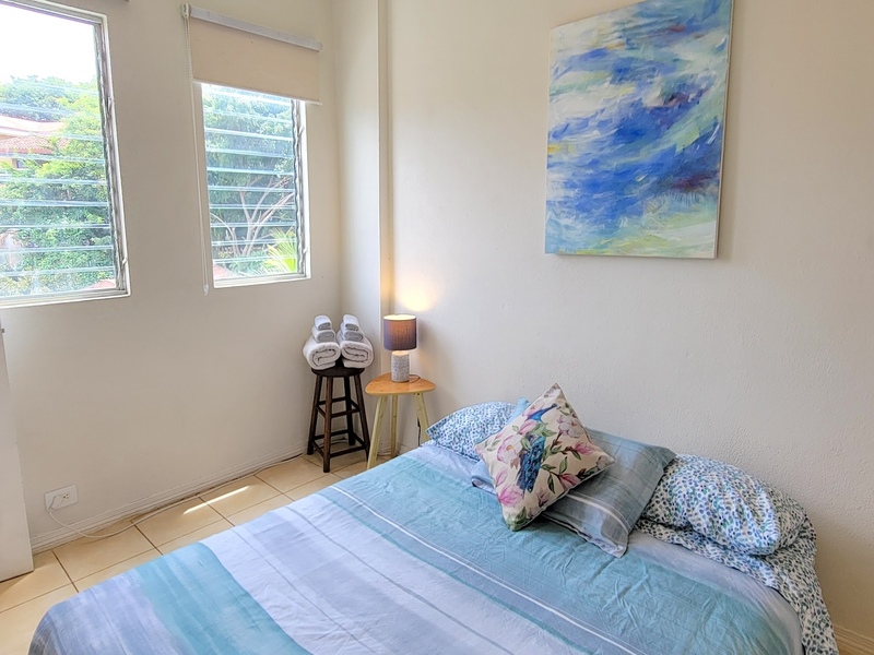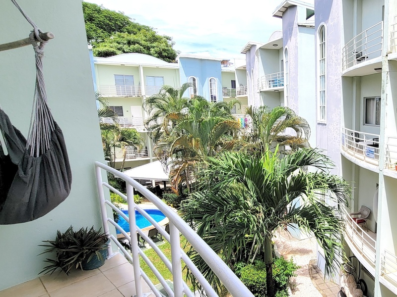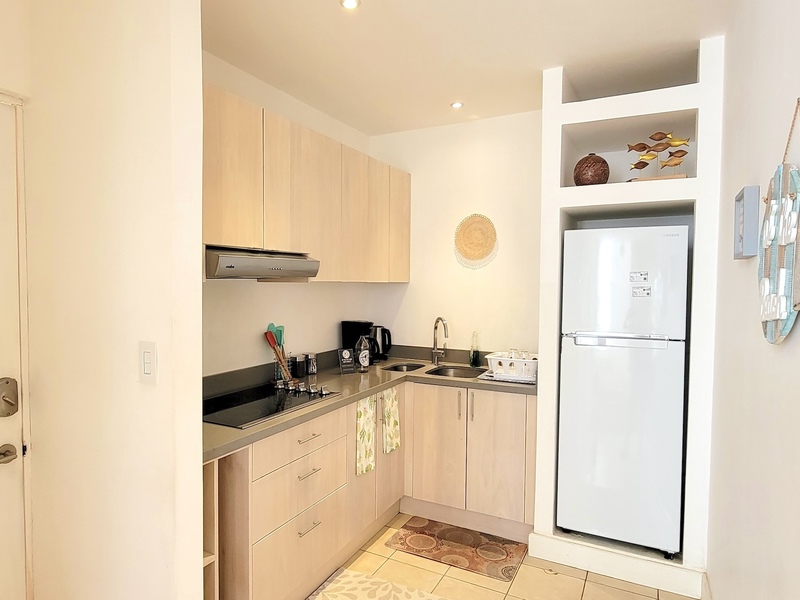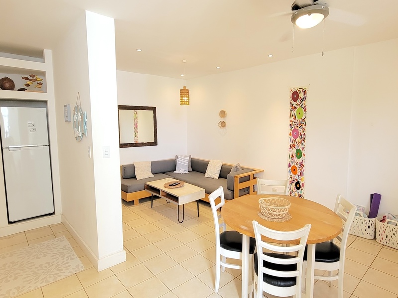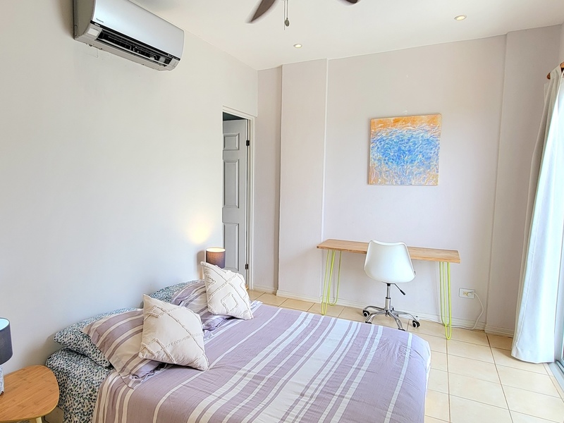 The open-concept main level is filled with natural light and includes the living area, kitchen, laundry space, a guest half-bath, and an additional balcony. A large water tank was installed by the owner to ensure consistent water pressure throughout the unit. Sold fully furnished and move-in ready, this condo offers one of the best layouts within the 63-unit complex and is currently the most competitively priced option available, making Unit 42 an excellent entry-level opportunity in Tamarindo.