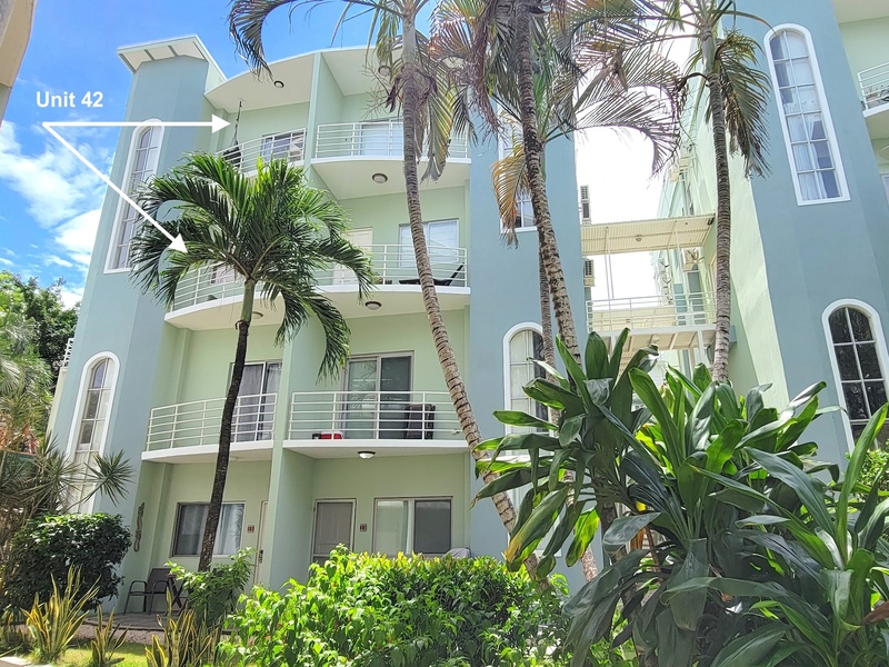 Located on the third and fourth floors at the very end of the complex, this bright corner unit offers 2 bedrooms and 2.5 bathrooms. Its corner position allows for an additional third terrace just outside the front door, enhancing privacy and outdoor space. Since 2021, the condo has been primarily used as a short-term rental, generating solid rental income for the owners. Both the primary and guest bedrooms feature air conditioning, ensuite bathrooms with hot water, built-in closets, and private balconies accessed through sliding glass doors.