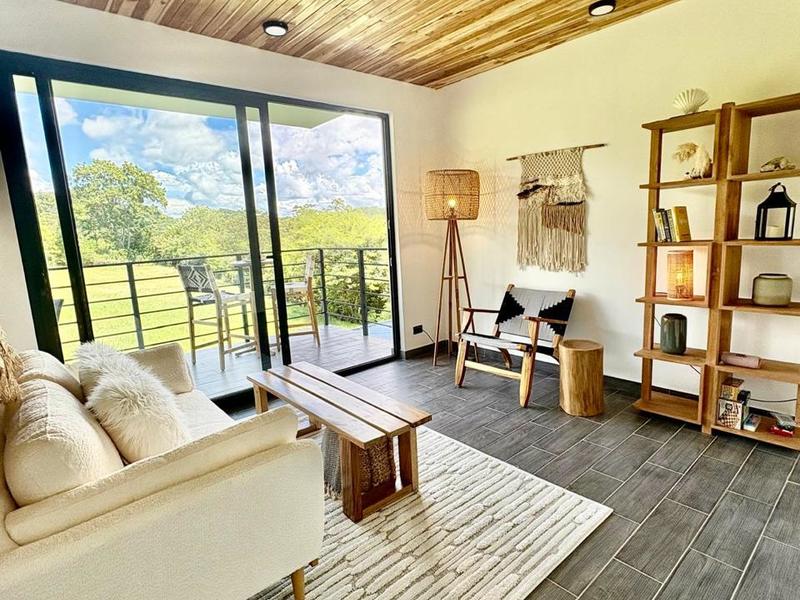 Discover this stunning brand-new apartment in one of Tamarindo’s most sought-after locations. This stunning, modern 2-bedroom, 1-bathroom home offers breathtaking views of lush green fields, where you can often spot monkeys, horses, and grazing cows from your expansive private terrace—the perfect spot for dining and lounging in nature.
