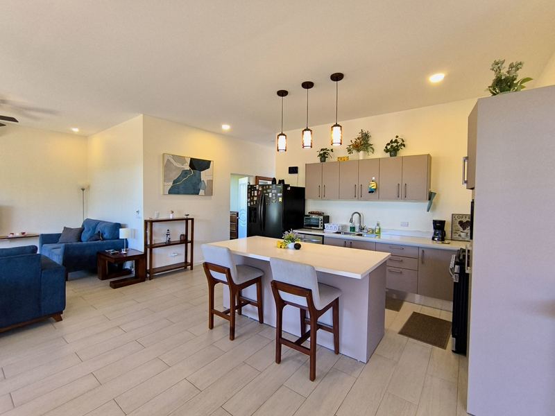 Built in 2022, this modern single-story home offers 150 m² of living space on a fully fenced 600 m² lot, located just 10 minutes from downtown Atenas. The house features two comfortable bedrooms and an original layout with one shared shower accessible from two separate toilets, combining functionality and smart design. The open-concept kitchen, living, and dining area creates a bright and welcoming atmosphere, complemented by a shaded terrace ideal for relaxing.