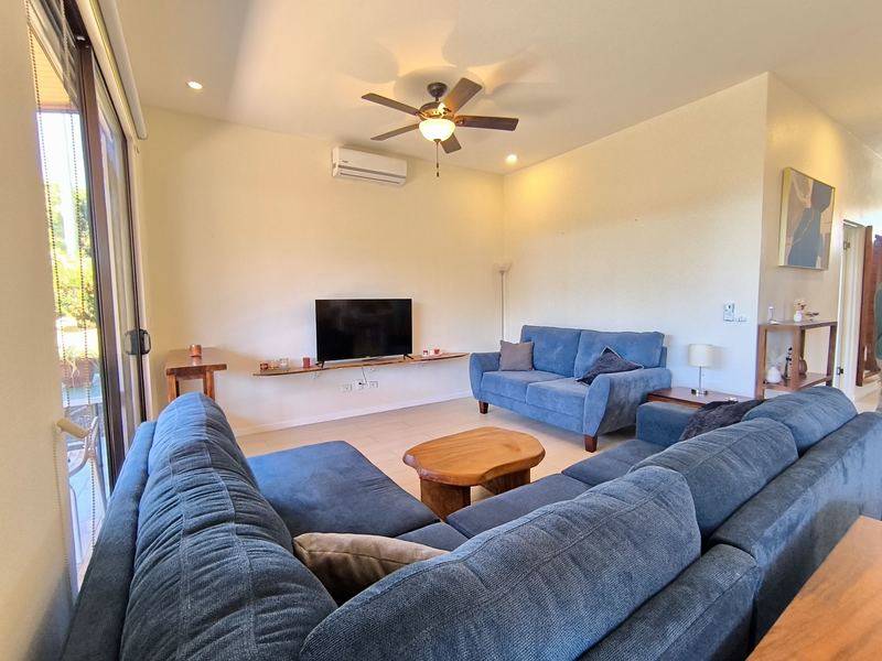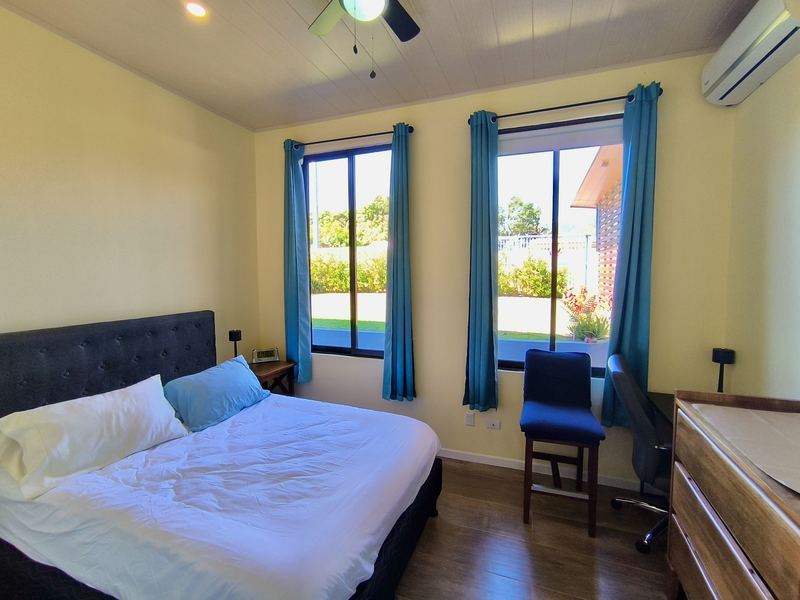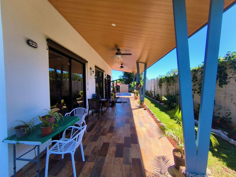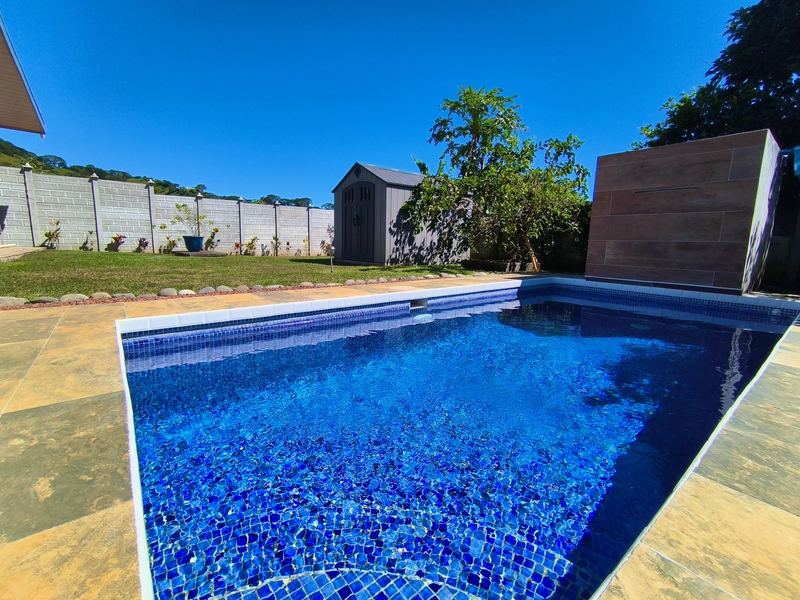 Property Features • 150 m² construction | Built in 2022 • 2 bedrooms, 1.5 bathrooms (shared shower design) • Fully furnished with quality appliances • Swimming pool with solar heating system • Solar water heater • 4 new air conditioning units • Alarm system with 10 cameras • Laundry room + storage room • Covered carport for 1 vehicle • Electric gate, fully fenced 600 m² lot