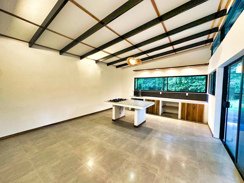 -A covered outdoor sitting area directly connected to the main living space, offering a shaded spot for outdoor meals, reading, or simply enjoying the tropical climate.
