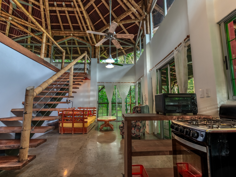 This meticulously crafted bamboo home features two cozy bedrooms and one well-appointed bathroom, designed for comfort and tranquility. The open-concept living area, bathed in natural light through expansive windows, flows seamlessly into a spacious veranda, perfect for relaxing or entertaining. The fully equipped kitchen includes modern appliances, ideal for preparing meals inspired by local flavors. Intricate bamboo craftsmanship, including a striking bamboo roof, elevates the home’s aesthetic, creating a serene and inviting atmosphere.