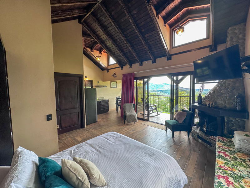 The property features two stand-alone studio villas, each luxuriously and tastefully appointed, and both equipped with cozy fireplaces, spacious decks, and keyless entry systems. From each villa, enjoy breathtaking views of the surrounding mountains and lush coffee fields, a landscape as iconic as it is serene.