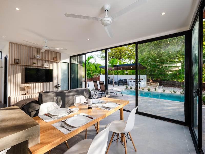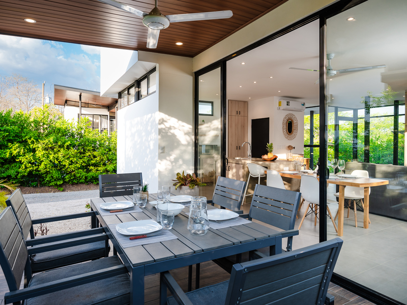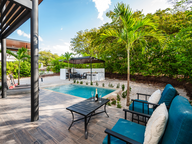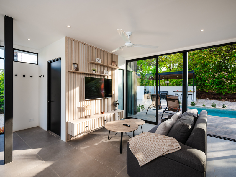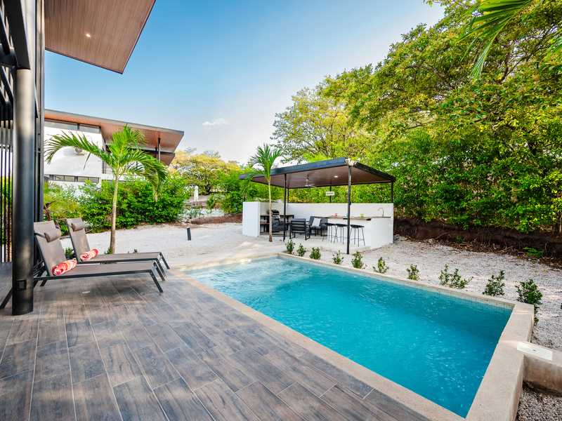 Discover this unique villa with an original architectural style, created in collaboration with local designers. Nestled within an exclusive community near Playa Conchal and Playa Grande, and surrounded by lush greenery, the property offers the perfect balance of elegance, comfort, and location. Just a short walk from both the beach and nearby shops, it provides the ideal mix of tranquility and convenience. The home includes 2 bedrooms, 2 full bathrooms, a bright living area with kitchen, a private pool, a rancho, and a barbecue space—perfect for enjoying the Costa Rican lifestyle outdoors. Suitable as a primary residence or as an income property, it has already proven successful on rental platforms, generating excellent returns in its first year. This is a strong investment opportunity in one of Guanacaste’s most desirable areas. The villa is only minutes away from some of the region’s most beautiful beaches—Playa Conchal, Puerto Viejo, Bahía Piratas, and more—as well as schools, clinics, supermarkets, and essential services within a 10–15 minute drive.