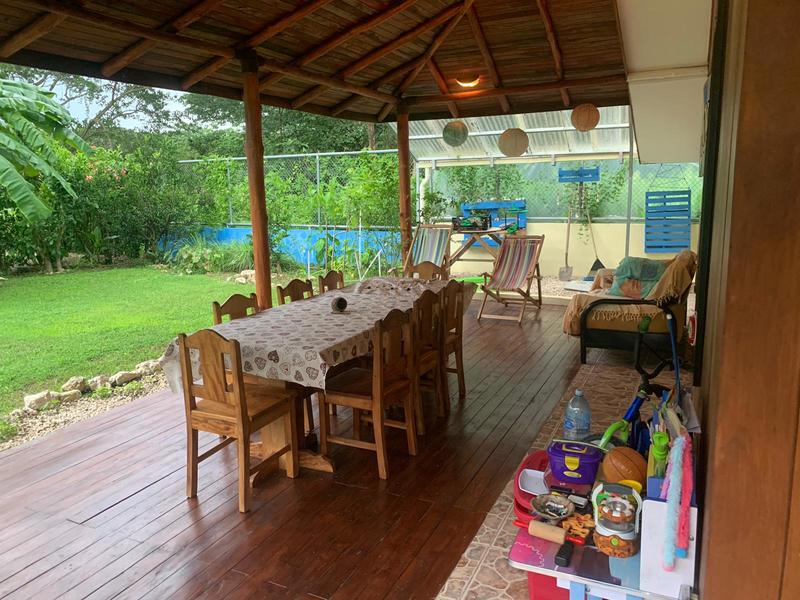 Inside, the layout is practical and bright, featuring an open living area and a well-equipped kitchen that flows easily through the home. The wraparound covered terrace extends the living space outdoors, creating an ideal setting for morning coffee, al fresco dining, or relaxing in the tropical breeze.