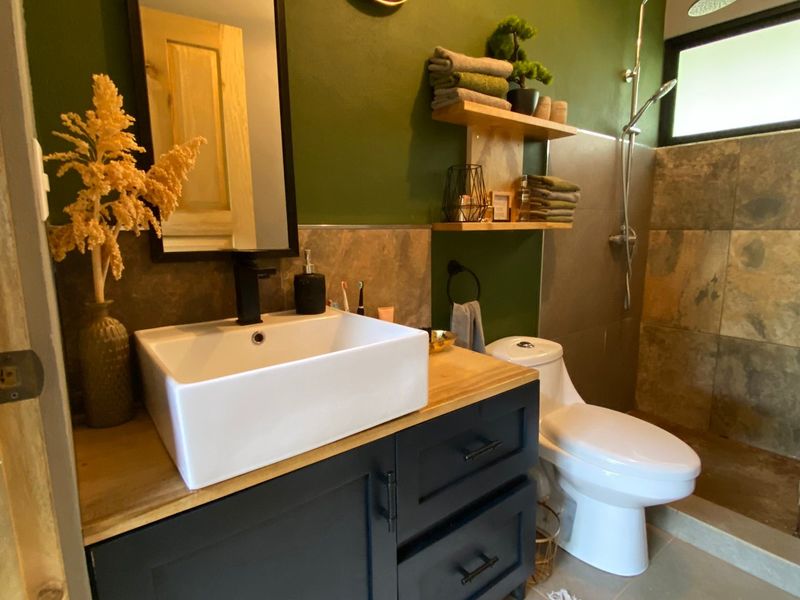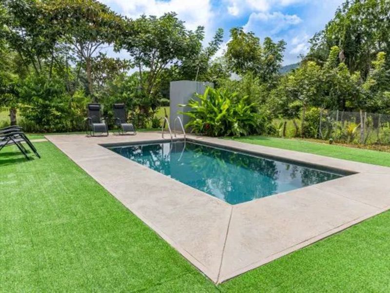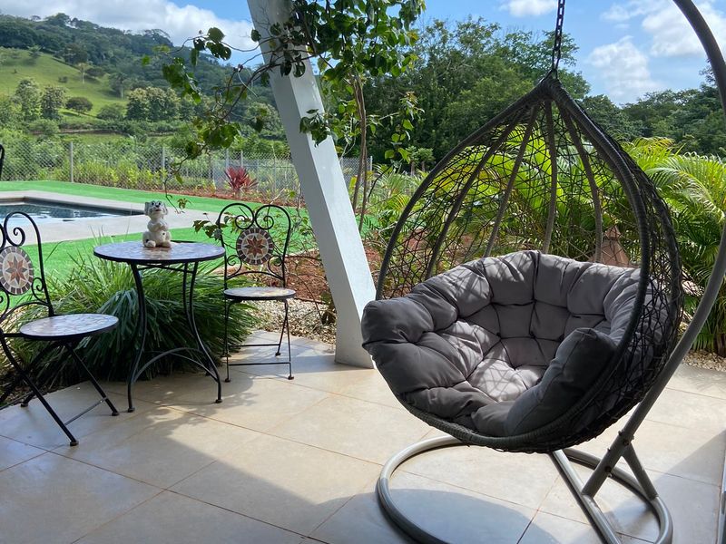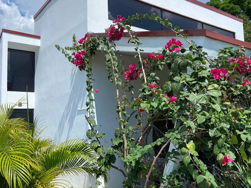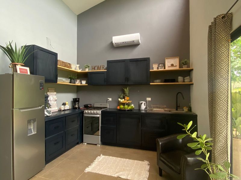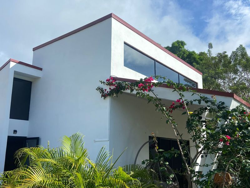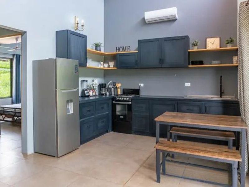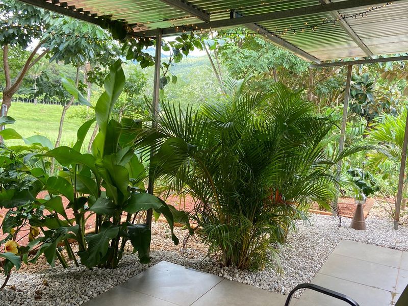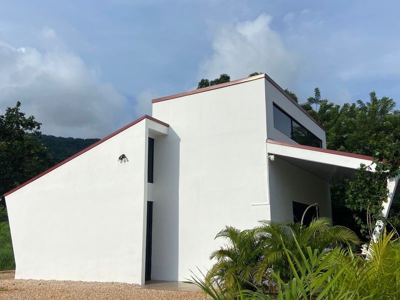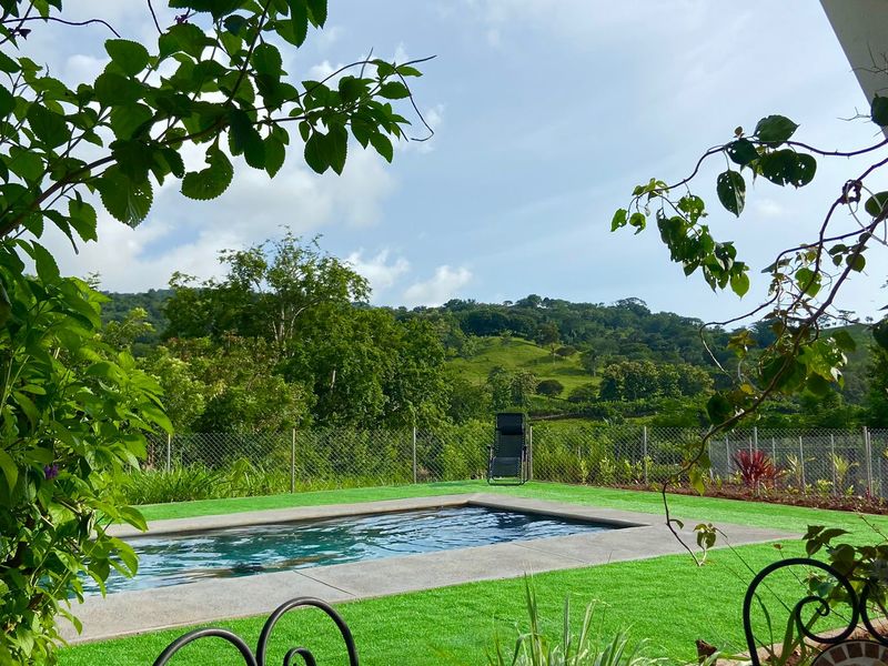 Escape to an idyllic haven in the peaceful community of Santa Marta, located just 20 minutes from the coast. This beautiful hillside home, completed in 2023, offers relaxed living on a meticulously landscaped 0.20-acre (834 m²) property adorned with native vegetation and colorful gardens. Possibility to purchase the next lot of 420 sqm. The charming 2-bedroom, 1-bath residence showcases an open-concept layout that unites the kitchen, living, and dining spaces for easy everyday living and entertaining. Modern comforts such as a fully equipped kitchen and air conditioning provide year-round convenience. Each bedroom enjoys its own private entrance from the covered terrace, allowing effortless flow to the inviting in-ground pool, while the generous bathroom features an elegant tiled shower for a refined touch.