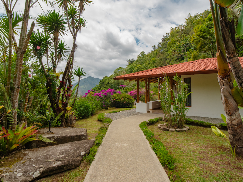The property features manicured botanical gardens, forest trails for hiking and birdwatching, and easy access to the nearby villages of Los Ángeles, Canaan, Rivas, and San Gerardo, each with cafés, organic markets, and warm local communities.
