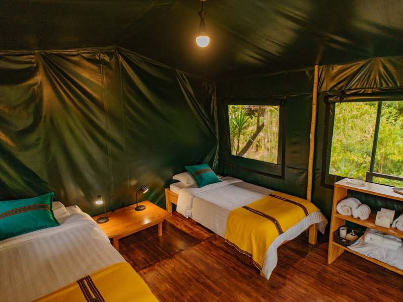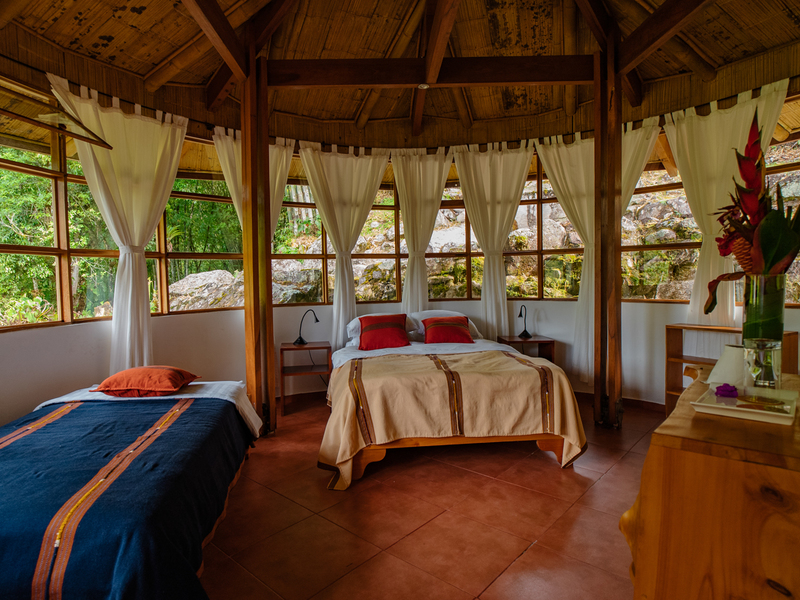 - guest lodging consisting of four Quetzal concrete suites, four Tángara wooden casitas, two Nido suites, and three glamping units called Amantes de la Naturaleza