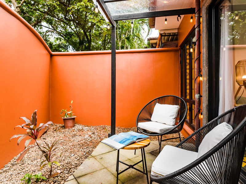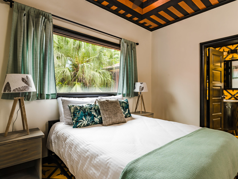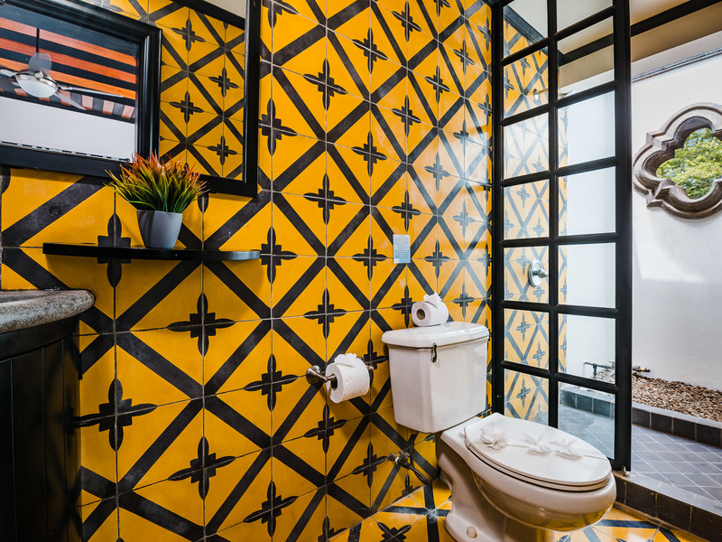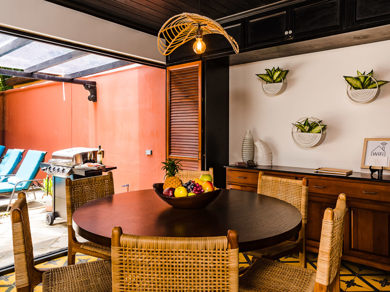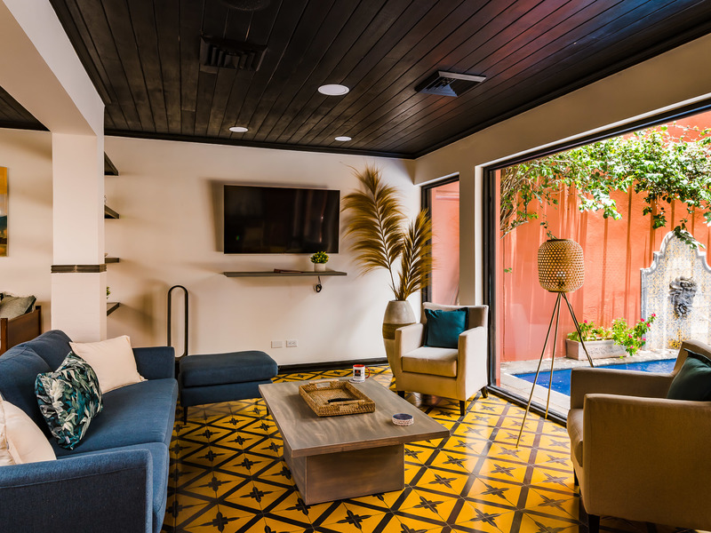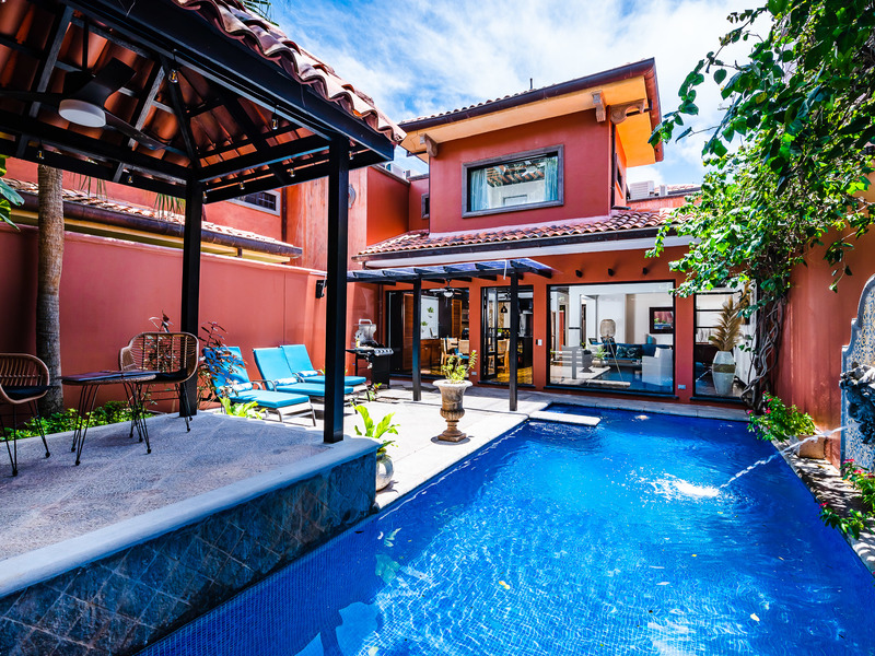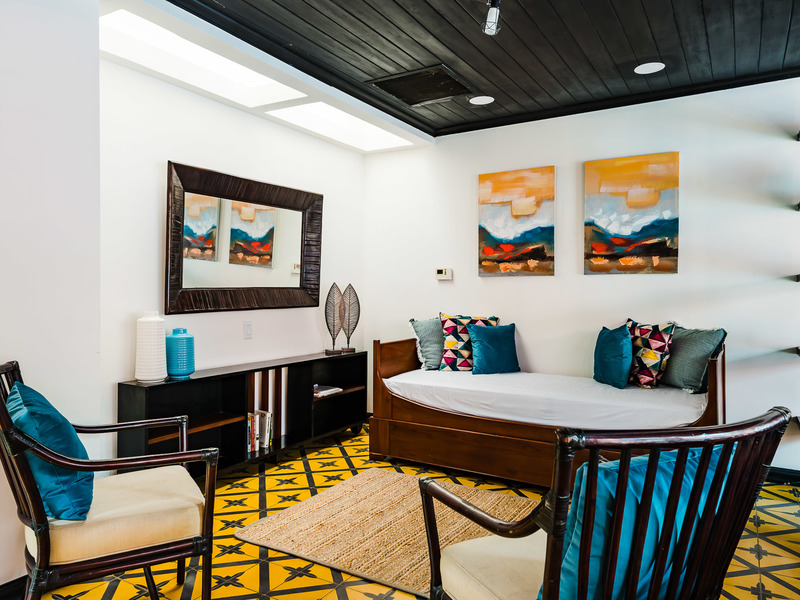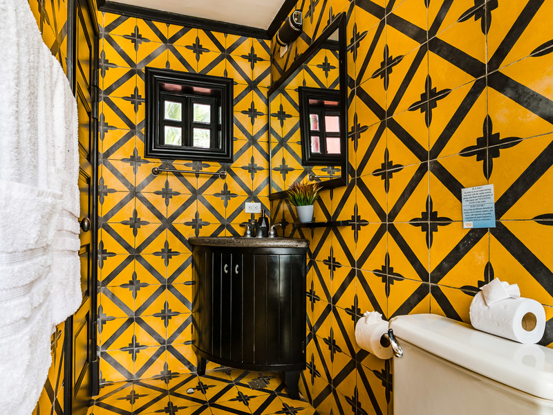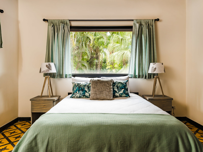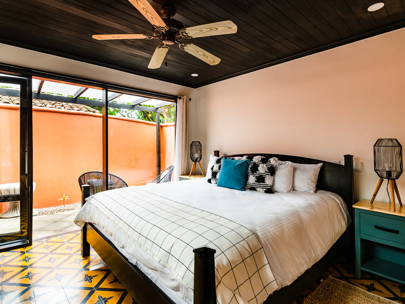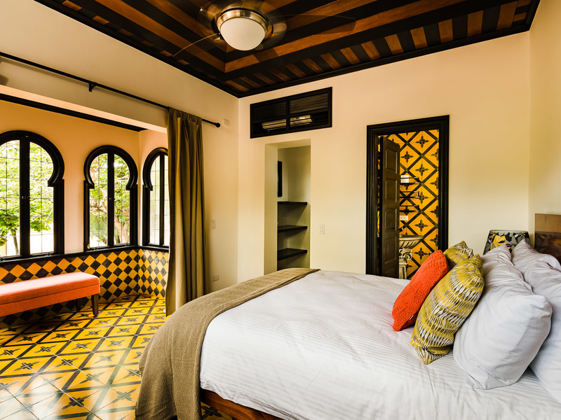 Thoughtfully designed, the interiors feature hand-painted tile floors, arched Moorish-style windows, exposed wood-beam ceilings, and a warm, tropical color palette that invites relaxation. Two spacious bedrooms offer king-size beds, while the third features a queen—all tastefully decorated and laid out with privacy and ease in mind.