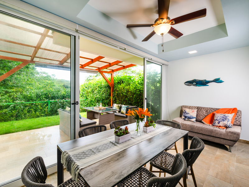 Welcome to the beautiful, luxuriously appointed Jacarandas #12 Townhome located within the exclusive gated Rancho Villa Real community. This lushly wooded enclave is just 5 min from Tamarindo beach. Jacarandas #12, completed in 2023, is beautifully furnished and provisioned for your every comfort. The custom interior exudes tranquility, and creates the true Pura Vida spirit in your living spaces. This home has been substantially upgraded with a dining room addition, a back patio pergola for BBQ’ing in the rain, and a private fully landscaped backyard.