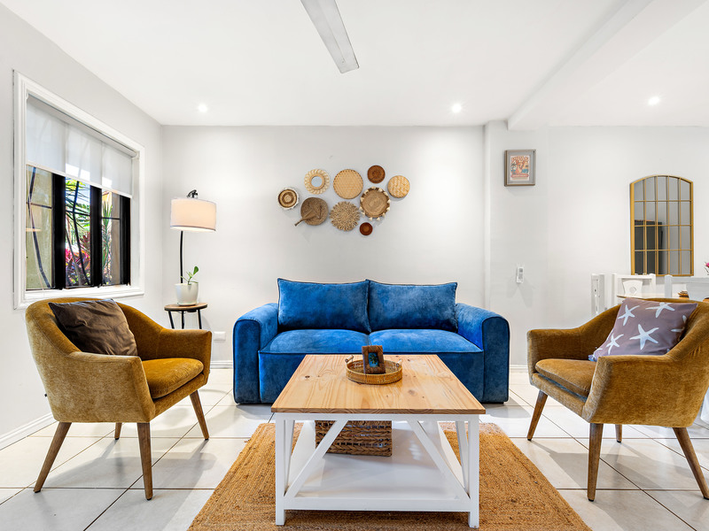 Step outside to the shaded deck, an intimate outdoor room under mature foliage with room for lounging, dining and evening drinks. The property also enjoys a tropical, enclosed courtyard with a charming pool and sun lounges, the perfect shared amenity to boost nightly rates and attract families, couples and remote workers.