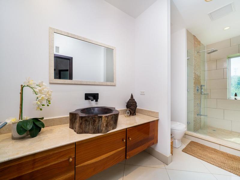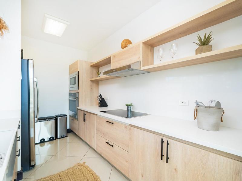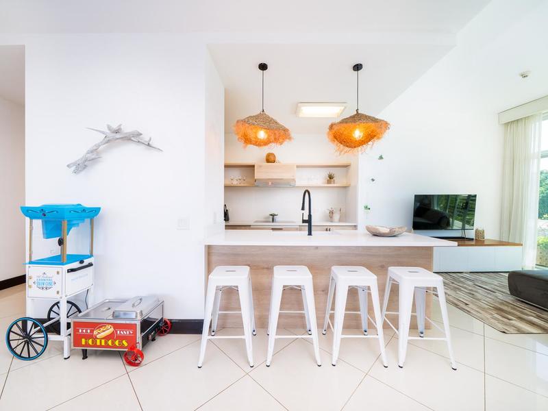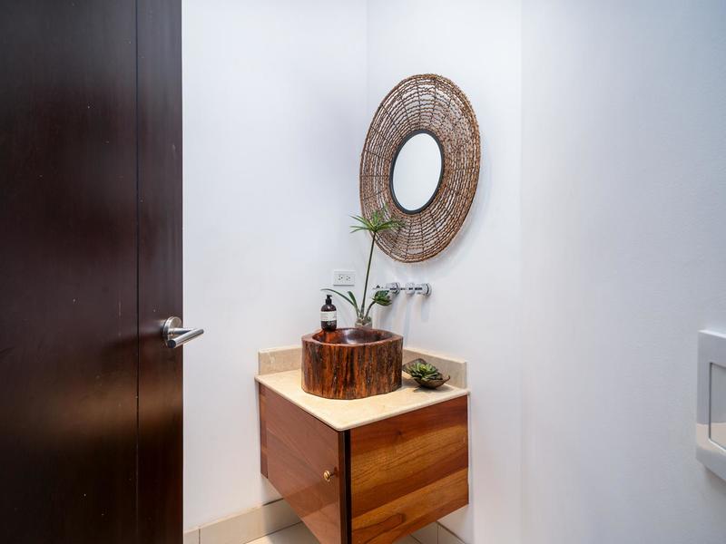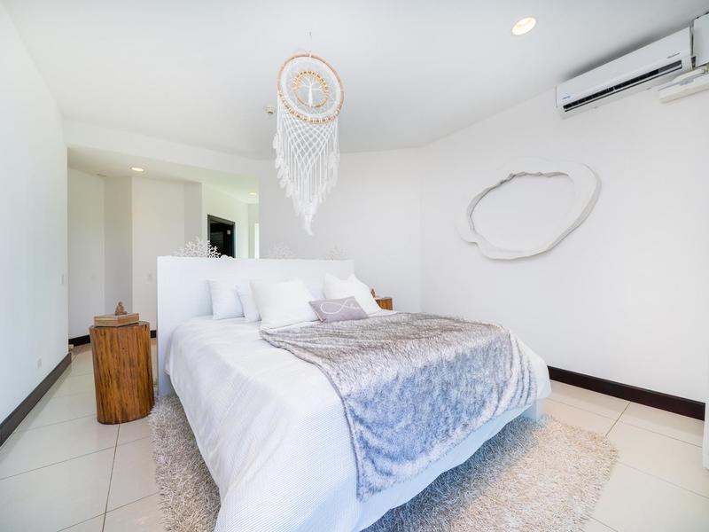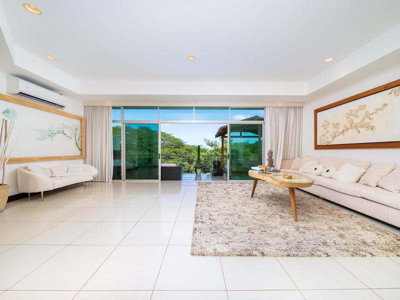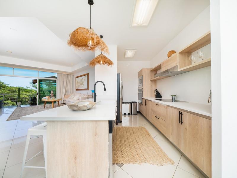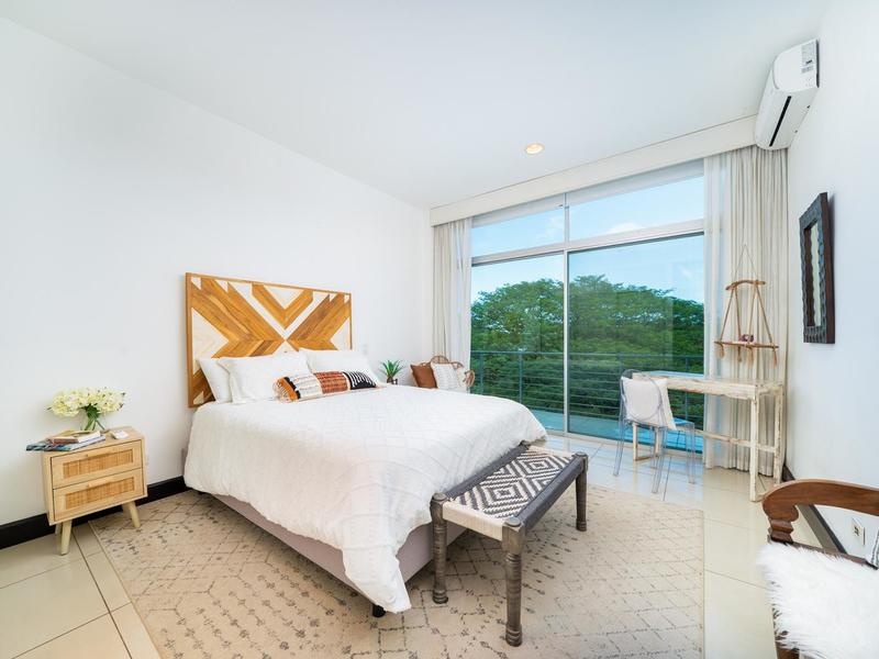 Inside, the open layout immediately creates a sense of space, enhanced by large windows that fill every corner with natural light. The kitchen features quartz countertops and a modern, clean design that integrates seamlessly with the living and dining areas, creating the relaxed coastal ambiance Tamarindo is known for. High ceilings, wide social areas, and a thoughtful distribution of the bedrooms elevate the comfort and livability of the home, offering both practicality and style.