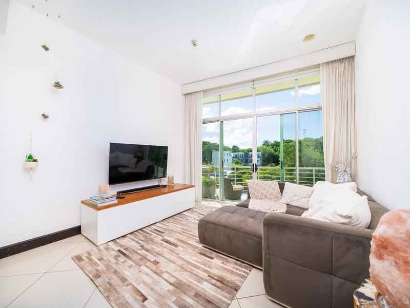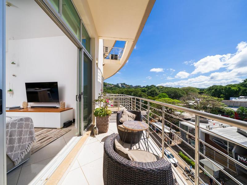 One of the condo’s most remarkable features is its large private terrace surrounded by tropical greenery—a peaceful retreat perfect for morning coffee, evening sunsets, or quiet moments in nature. Multiple balconies further extend the connection to the outdoors and offer serene views of the surrounding landscape, including a subtle peekaboo of the Pacific Ocean. The condo comes fully furnished, includes a dedicated parking spot, and is located within Pacific Park, one of Tamarindo’s most established mixed-use buildings offering 24/7 security, underground parking, a swimming pool, and a BBQ area. With its exceptional location, turnkey convenience, generous interior spaces, and strong rental potential, Pacific Park #406 stands out as a top opportunity within the Tamarindo condo market and a solid long-term investment in Guanacaste real estate.