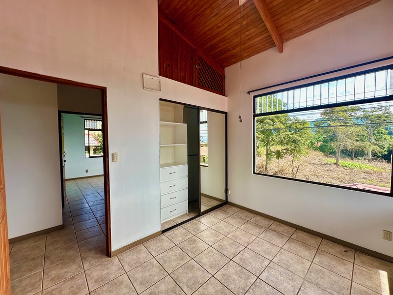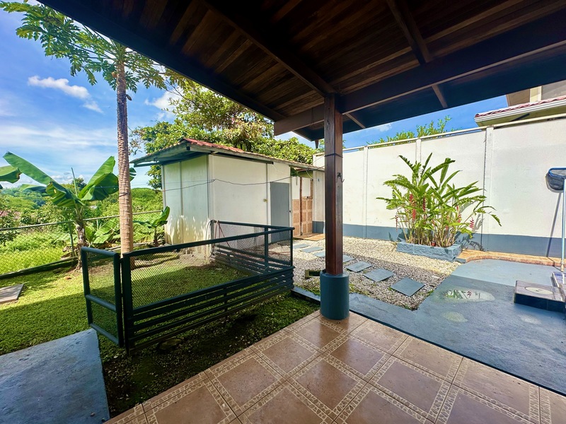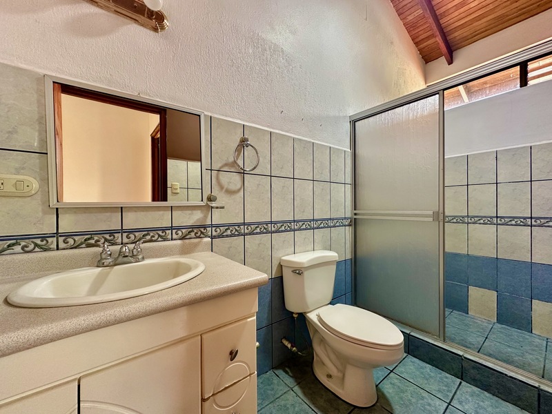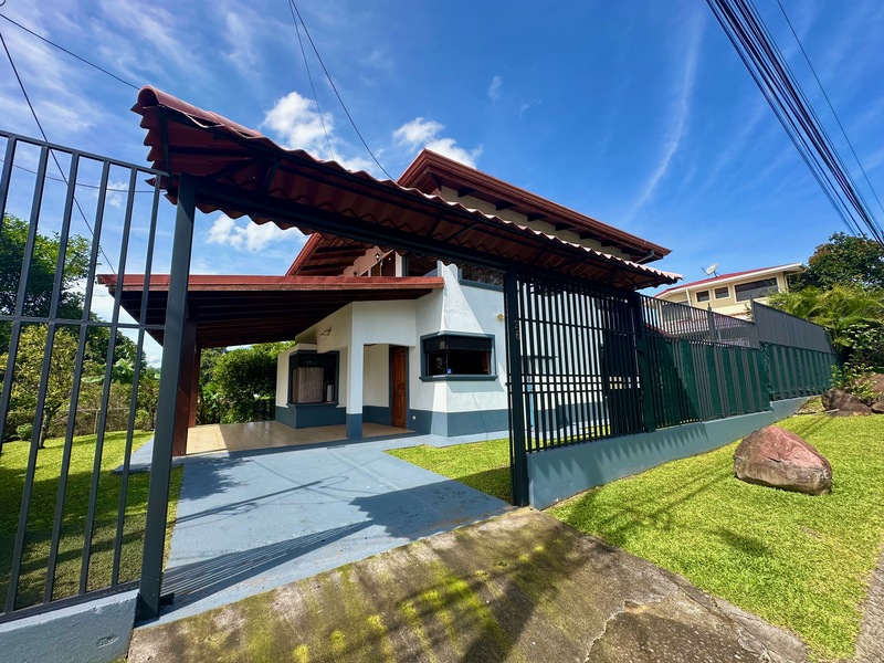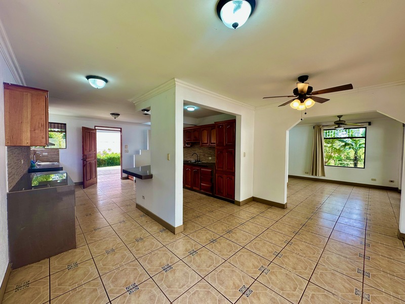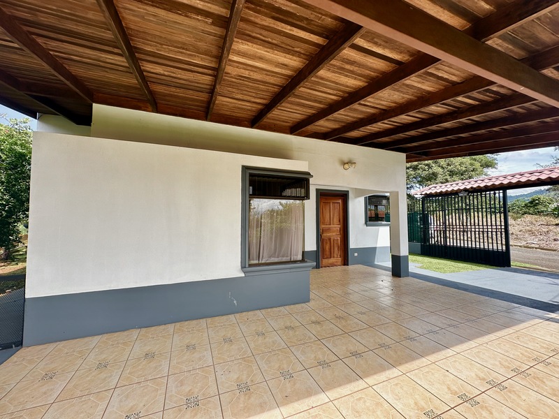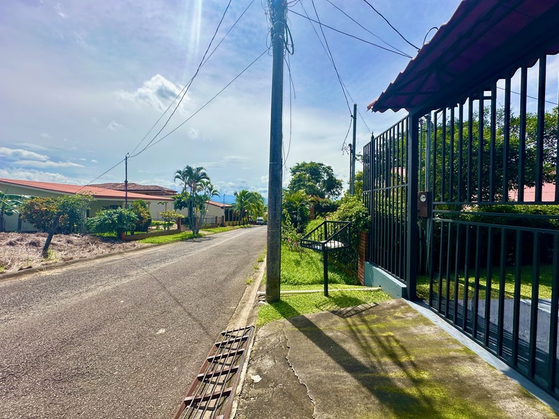 Discover this well-maintained two-story home, perfectly located on a quiet dead-end street in Atenas. Built about twenty years ago, the property combines solid construction with a comfortable layout. The ground floor features a kitchen, dining area, laundry room with toilet, and a flexible space that can serve as a TV or family room, all opening onto a terrace overlooking the pool. Upstairs, four bedrooms and two bathrooms provide space and privacy, with two bedrooms sharing a spacious balcony. The lightweight structural design allows easy layout modifications, including the option to create two larger bedrooms while keeping both bathrooms. The fully fenced garden includes several fruit trees, and an electric gate leads to a covered carport for two vehicles. This home offers peaceful living just minutes from downtown Atenas.