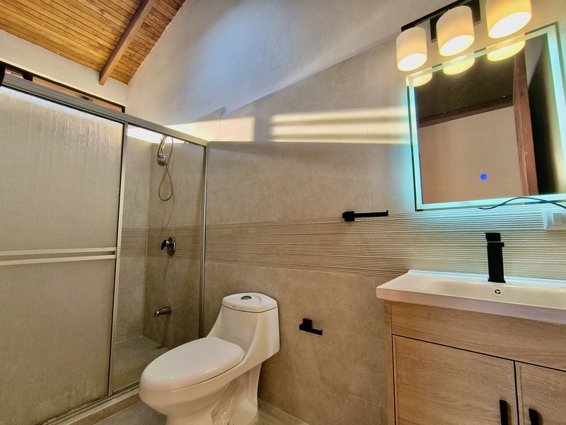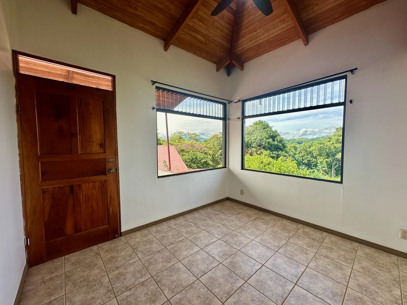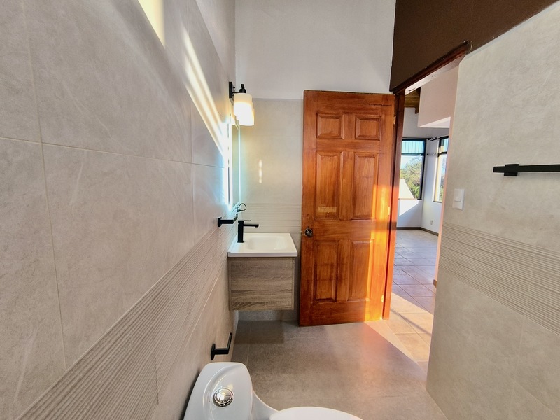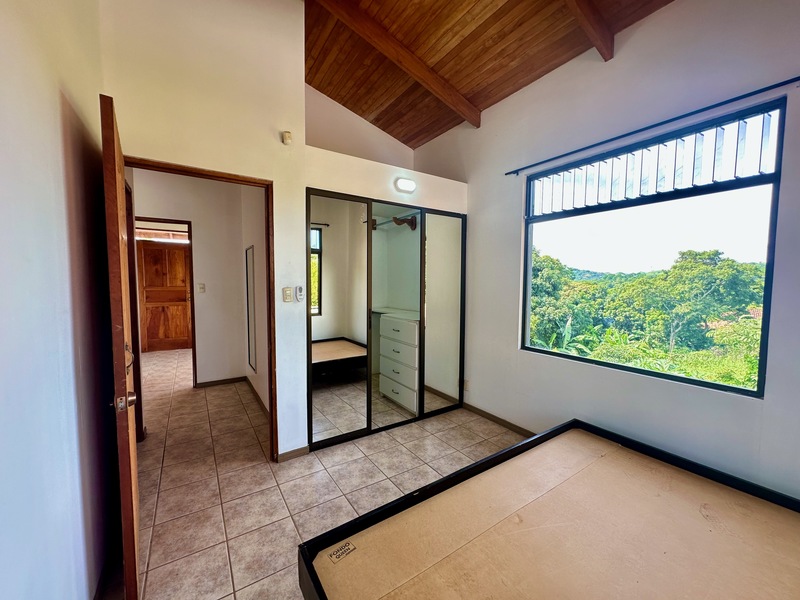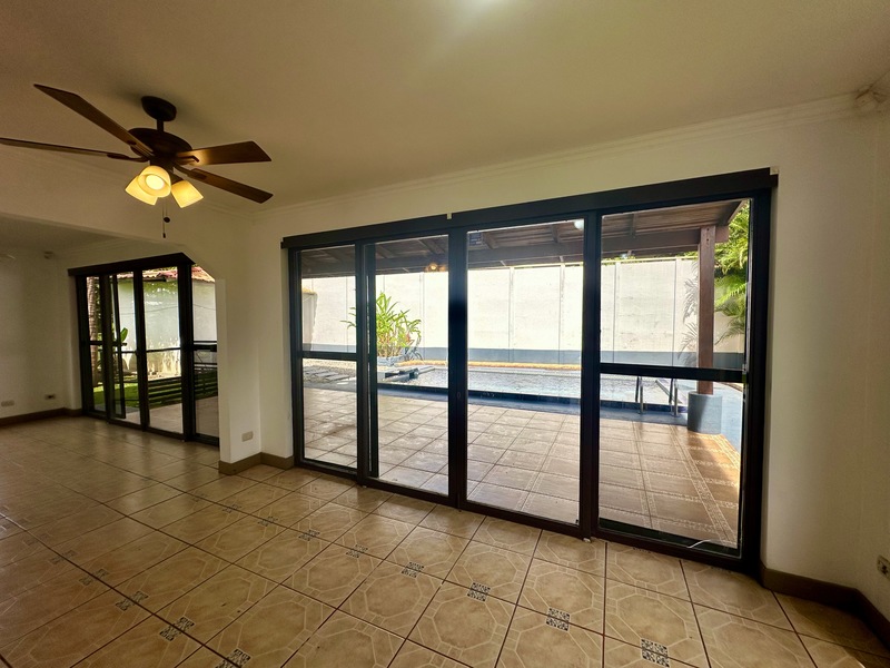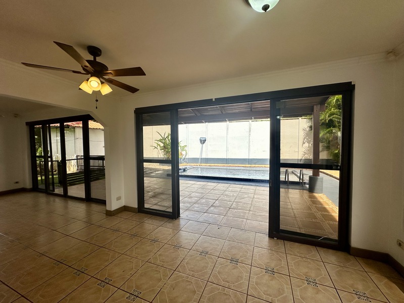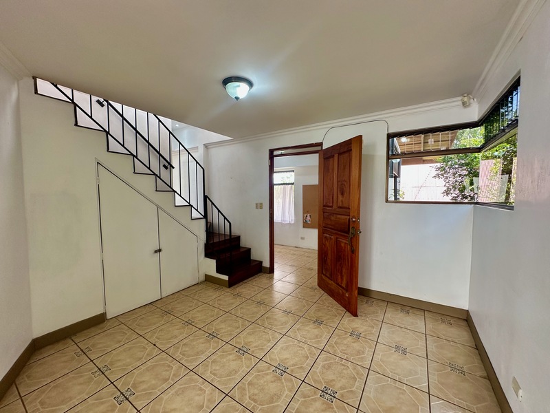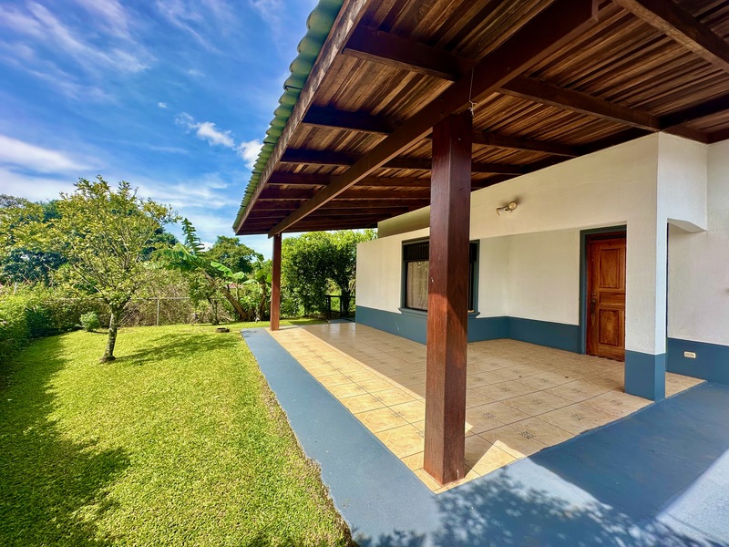Discover this well-maintained two-story home, perfectly located on a quiet dead-end street in Atenas. Built about twenty years ago, the property combines solid construction with a comfortable layout. The ground floor features a kitchen, dining area, laundry room with toilet, and a flexible space that can serve as a TV or family room, all opening onto a terrace overlooking the pool. Upstairs, four bedrooms and two bathrooms provide space and privacy, with two bedrooms sharing a spacious balcony. The lightweight structural design allows easy layout modifications, including the option to create two larger bedrooms while keeping both bathrooms. The fully fenced garden includes several fruit trees, and an electric gate leads to a covered carport for two vehicles. This home offers peaceful living just minutes from downtown Atenas.