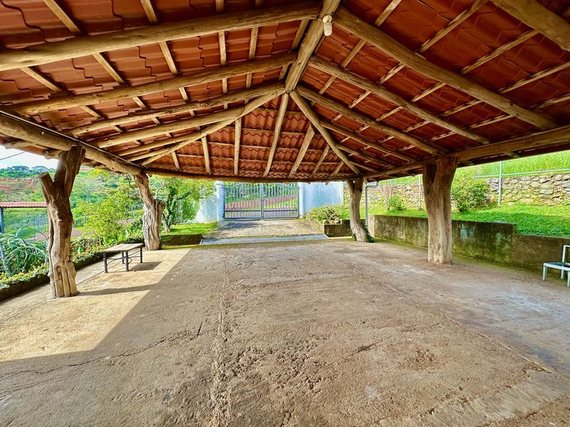 Step into the true spirit of Costa Rica with this authentic single-story home, built over 30 years ago with exceptional craftsmanship. Featuring high cedar wood ceilings and hardwood bedroom floors that look nearly new, the house combines timeless character with solid construction. The layout includes three bedrooms, two bathrooms, an open-concept kitchen with dining and living areas, plus a laundry room and covered carport for two vehicles. At the back, a spacious rancho invites you to relax or entertain while enjoying sweeping mountain and volcano views. The property also includes a small outbuilding with an additional bathroom that can be renovated or repurposed. Fully fenced and located in a peaceful, safe neighborhood, this charming home is just 10 minutes from Atenas, at a higher elevation offering cooler breezes and year-round comfort.