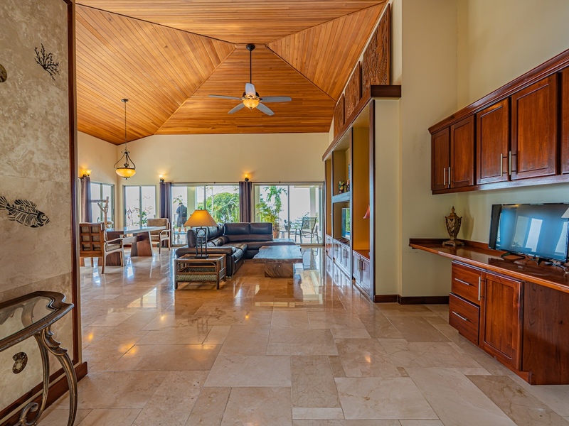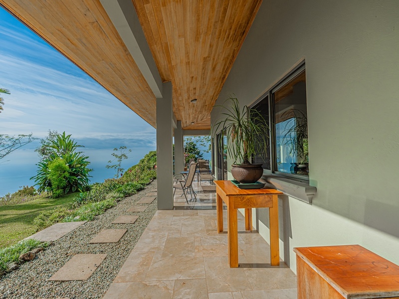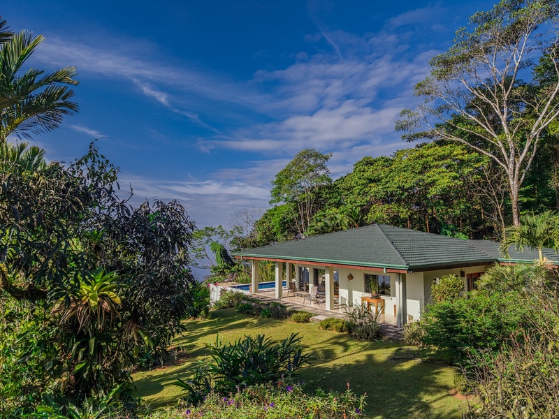 From the moment you enter the long, private driveway, the sense of scale and exclusivity is unmistakable. The property unfolds into sweeping, unobstructed Pacific Ocean views, centered on the legendary Whale’s Tail, with sightlines extending to Caño Island, Ballena Rock, the Three Sisters, Corcovado Peninsula, and the Tortuga Delta, all framed by dramatic sunset colors and cooling ocean breezes.
