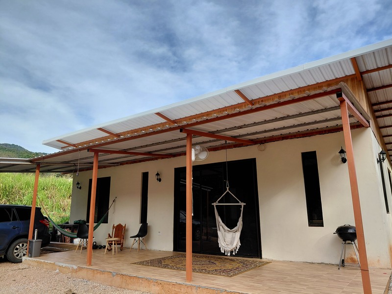 Located in the peaceful, charming area of El Carmen de Nandayure, approximately a 20-minute drive from Punta Islita and Playa Carrillo, this recently built home offers an excellent investment opportunity for those seeking a simple, functional lifestyle in harmony with nature, in the heart of Guanacaste. The property is situated along the main access road, ensuring easy year-round access, and features a privileged natural setting, with the magnificent Río Ora just minutes away, providing a fresh and tranquil environment ideal for relaxation and outdoor enjoyment. The home offers pleasant views of the surrounding mountains, set in a quiet and secure area, perfect for anyone looking to step away from the fast-paced city lifestyle and embrace the true Pura Vida way of life in Costa Rica. The house is built with solid concrete walls and concrete slabs, offering durability and low maintenance. The roof features a PVC-insulated cover designed to reduce heat, noise, and dust. Interior partition walls are made from durable panel materials, ensuring practicality and efficient use of space. One of the highlights of this property is its spacious front garage, which can also be used as a comfortable outdoor terrace or relaxation area, ideal for enjoying the surrounding natural environment. Additionally, the home benefits from a dual water supply system, with access to both public aqueduct water and a private well. This setup guarantees reliable and continuous water service, even during the dry season, adding significant value and peace of mind.