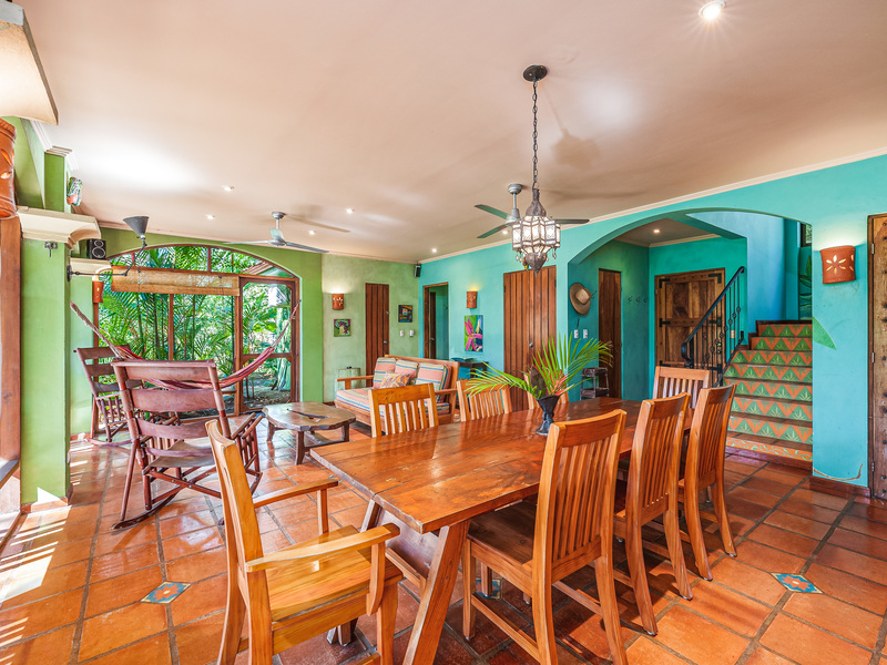 The main living room feels as if a garden patio has been combined with a cozy, country house in the Mediterranean. If your dream is to breathe more fresh air and to truly enjoy the Costa Rica forest, there couldn't be a better space.
