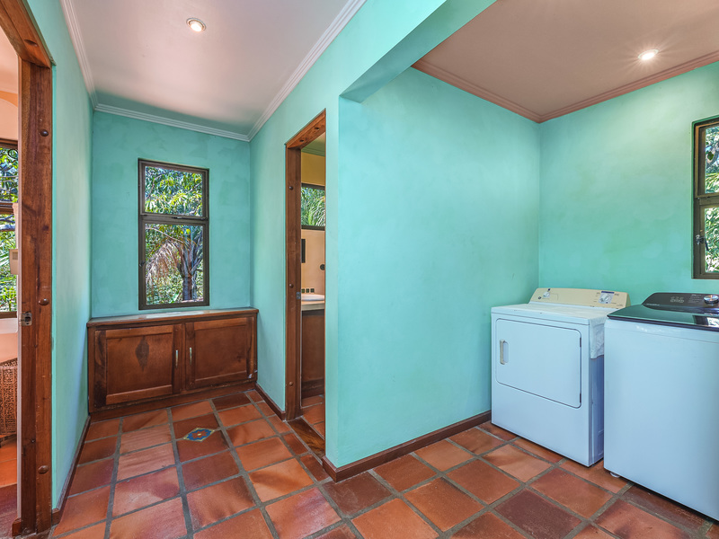 One could live entirely on the first floor, with the master suite, kitchen and a sitting room off of the spacious main living space. Outdoors, carefully manicured gardens (with over a dozen varieties of fruit) surround the house, creating a true tropical oasis.