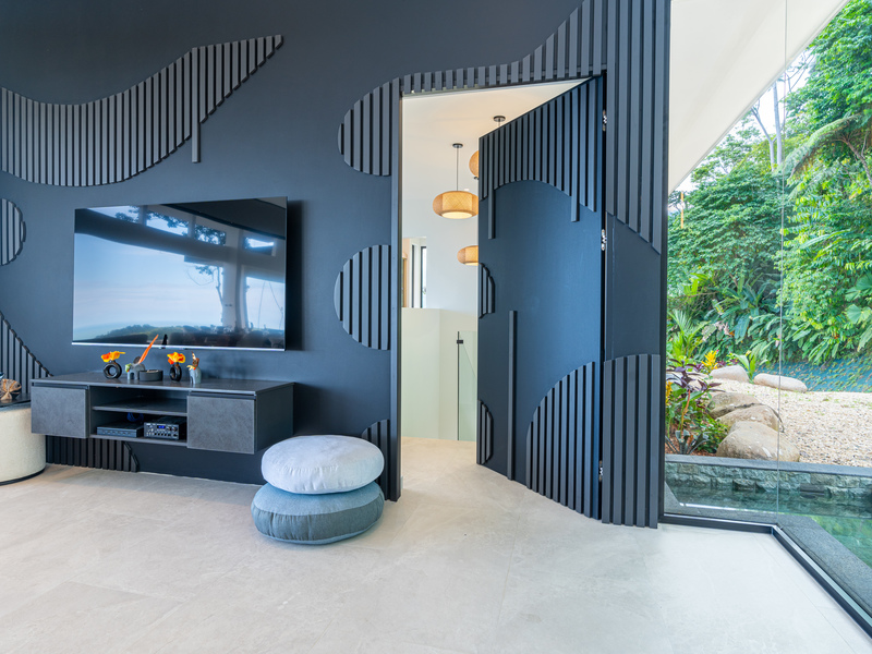 Commanding 280-degree panoramic ocean views, Casa Armonía Elements gazes across the deep blue Pacific, taking in three distinct whitewater coastlines, Caño Island, and the iconic Whale’s Tail formation at Marino Ballena National Park. Every evening, the sky bursts into color with year-round sunsets, while the twinkling lights of Ojochal shimmer below, painting a scene of magic and mystery.