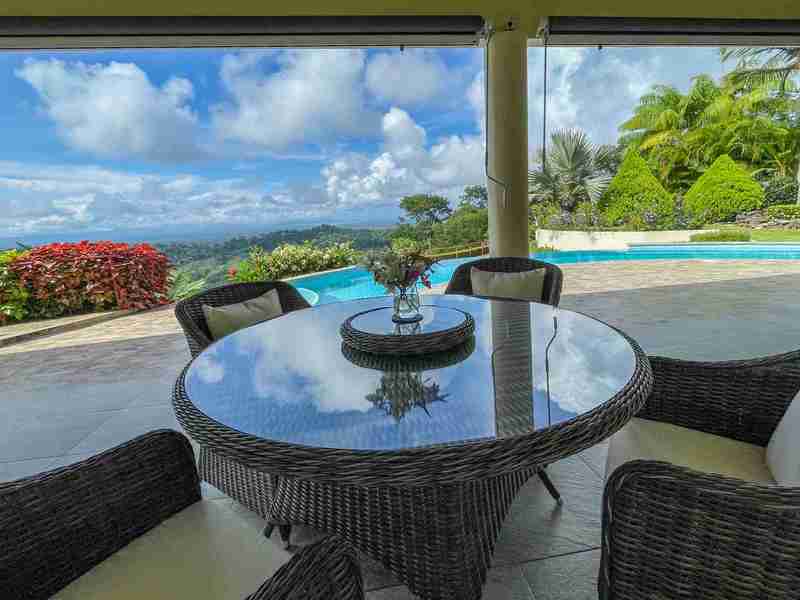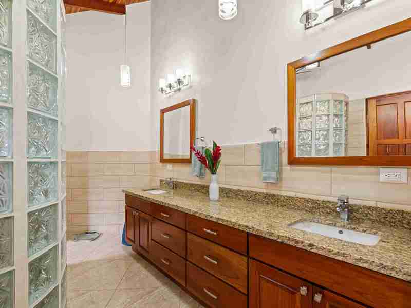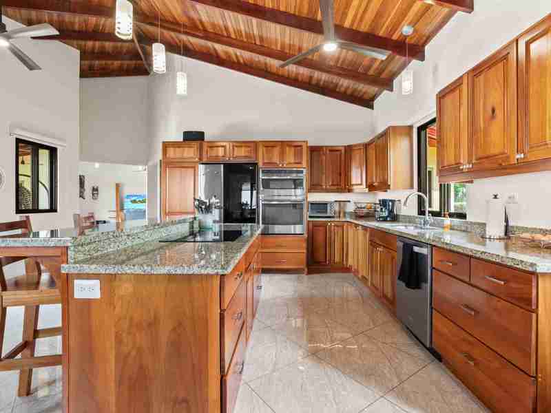 Outdoor Living The outdoor living space and the tropical garden really set this home apart. The home has some outdoor spaces perfect for enjoying the warm tropical environment while relaxing and watching the birds and the sparkling Pacific Ocean in the distance. When you open the wide glass slider doors, you find yourself in a beautiful and spacious covered outdoor living space with ceiling fans and quality patio furniture for your comfort. The pool and the sparkling ocean views and are calling you to enjoy the cool clear water for a refreshing dip to cool and rejuvenate you after a hard day exploring the country or after a brisk morning walk. The infinity edge pool waterfall provides a relaxing soundtrack to complement the sounds of the bountiful nature around you. If you want a taste of the jungle life, visit the secret shower grotto where you can shower outdoors in total privacy. Do you have a master griller in your family? Well, they are going to love the covered outdoor kitchen/BBQ area where the griller-in-chief chef can partake in the incredible views while having a cold one and grilling up your family’s favorite recipes. In short, the outdoor living space is incredible and complements this perfect home and provides a wonderful space for you to enjoy with your friends and family.