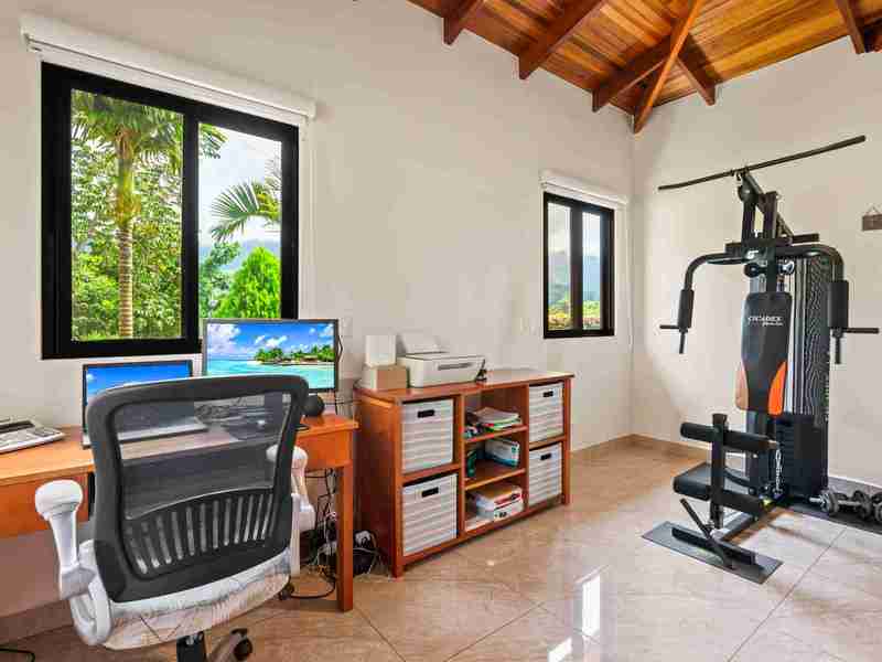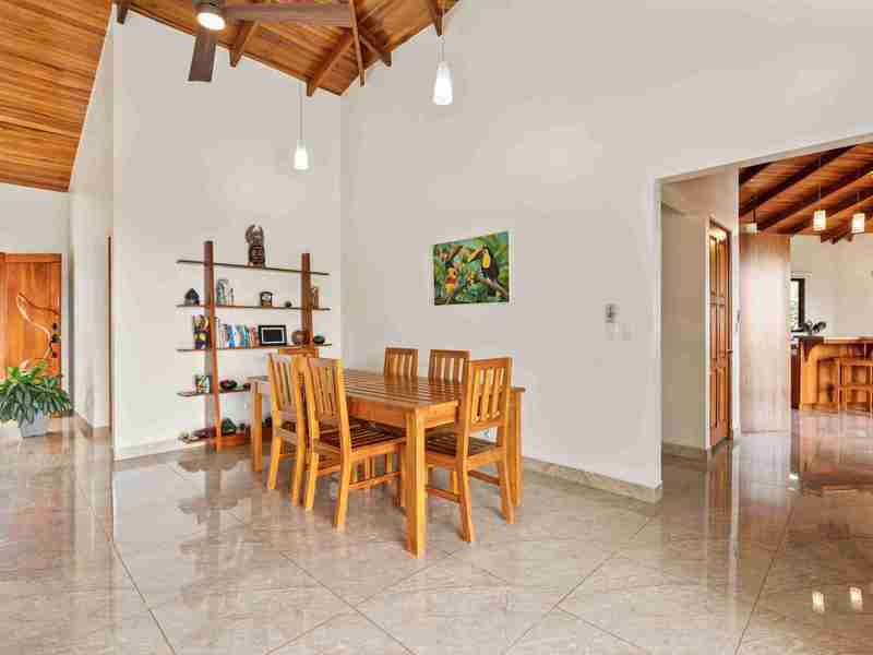 The Home You will immediately notice the high-quality construction and finishes throughout. Step inside and be captivated by the beautiful and airy atmosphere created by the high, local-wood ceilings and solid wood furnishings which bring a bit of Costa Rican class to the interior. The home features 3 spacious bedrooms and 2 full bathrooms. Air conditioning in the master bedroom ensures year-round comfort if you need a little break from a busy day exploring or for your sleeping comfort. One thoughtful feature here in the tropics is the dehumidified master closet and the pantry to keep your clothing and food safe and healthy. The home also includes a solar panel system that provides a big reduction in your electrical bill, paying dividends to your pocketbook every month.