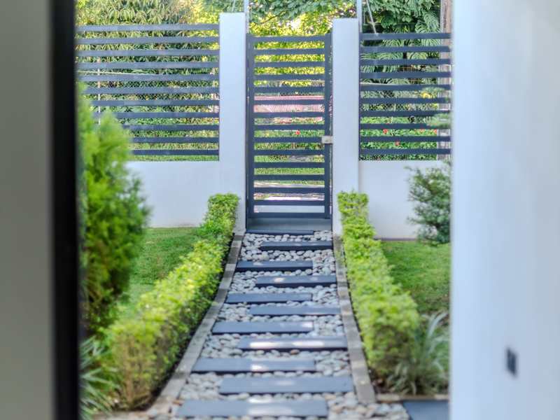 The two secondary bedrooms each feature built-in wardrobes, while the entire home reflects thoughtful upgrades like granite countertops, modern lighting, and quality finishes. The property is fully fenced, with an electric gate for security and privacy. A natural wall of trees along the perimeter (out of the property) enhances the sense of seclusion, bringing shade, freshness, and birdsong right to your doorstep. Most of the furniture is included, making the home move-in ready.