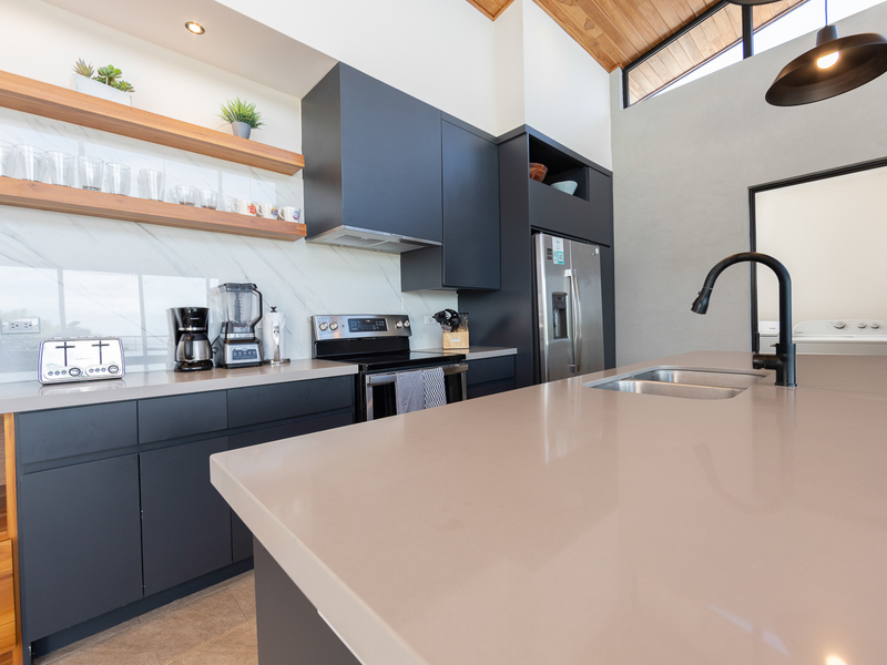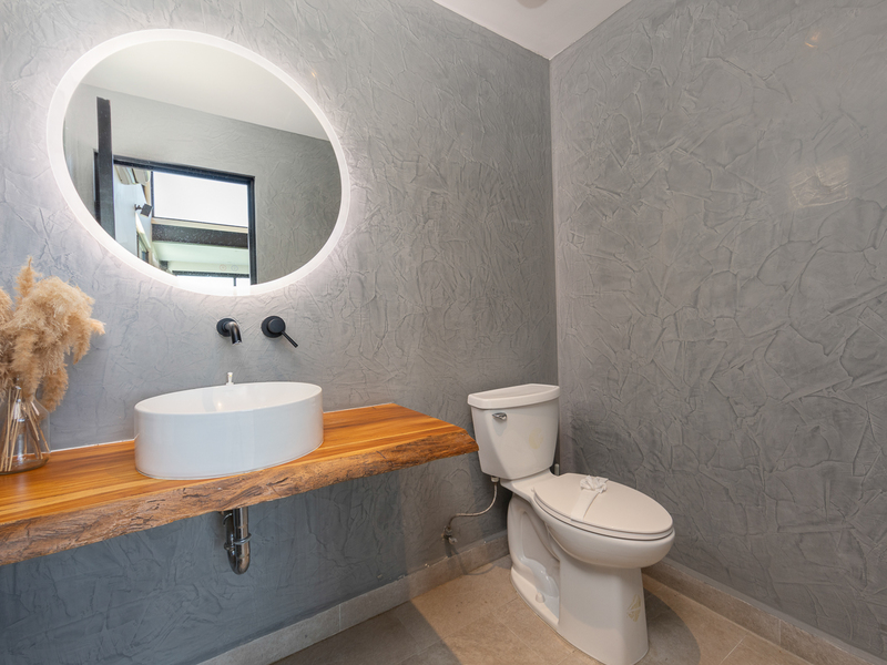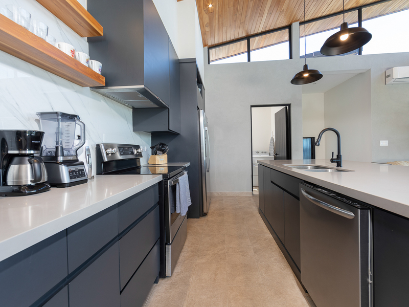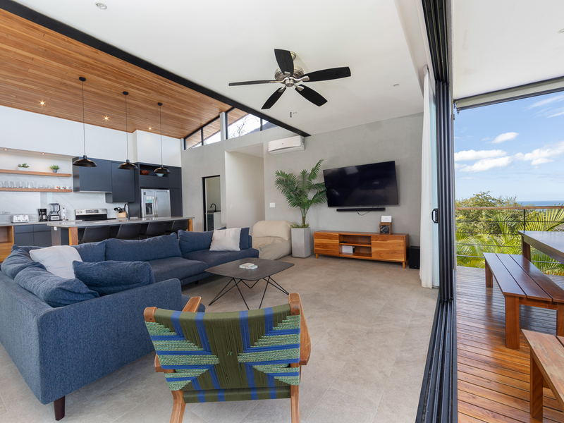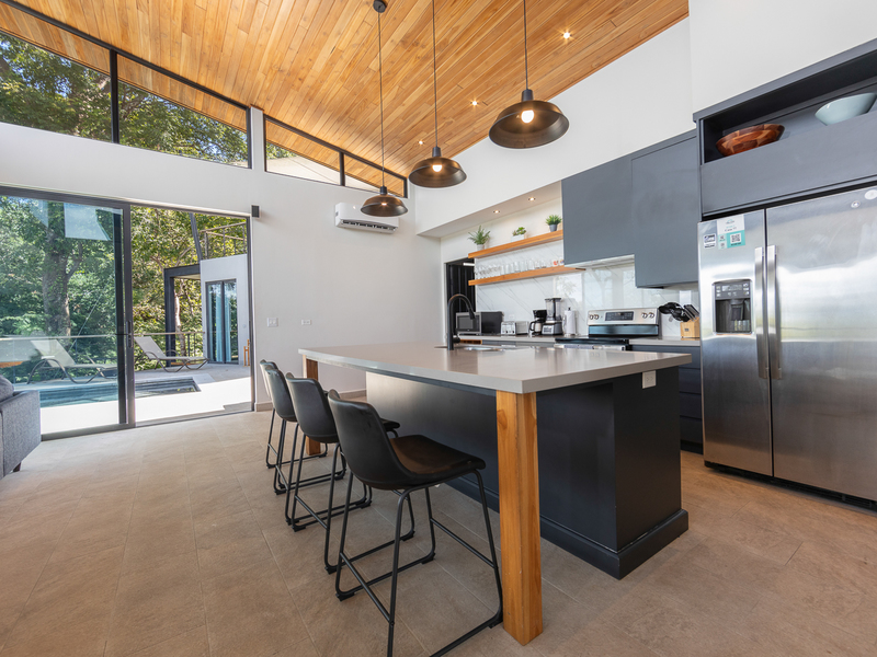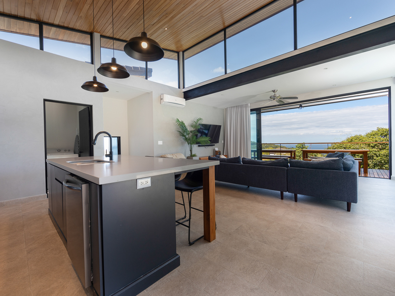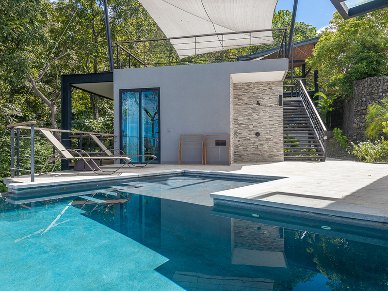 Situated in the upper section of San Pedro within the Las Ventanas de Playa Grande community, this newly constructed home offers an elevated setting and a well-planned layout. Covered parking welcomes you on arrival, leading to a bright outdoor deck that connects seamlessly to the main living areas. The pool is positioned between the main residence and two independent guest bedrooms, creating privacy while keeping all spaces connected.