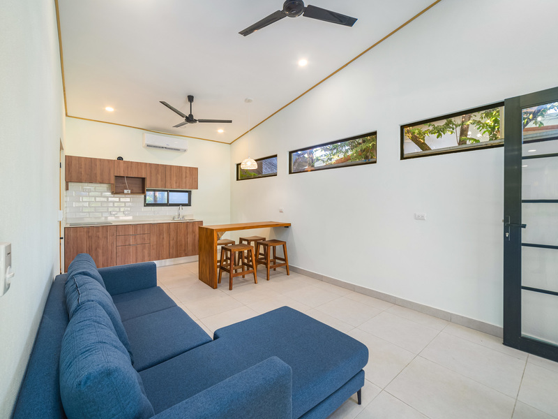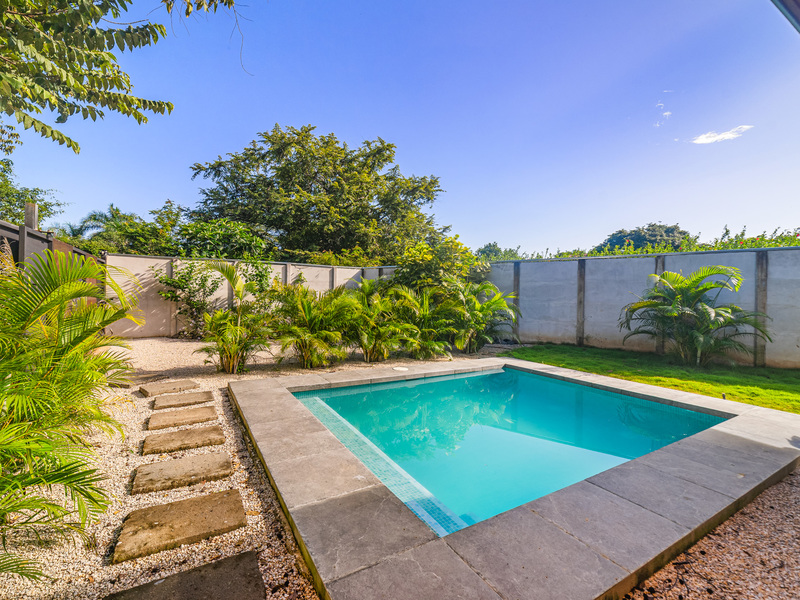 The layout has been well thought with an outdoor patio overlooking the pool, opening to the kitchen and living room area fully air conditioned and the 3 bedrooms are smartly distributed in a small hallway, allowing a quiet "sleeping quarters". It is adapted to both short term and long term rentals so you can use it at your convenience and make the best of it !