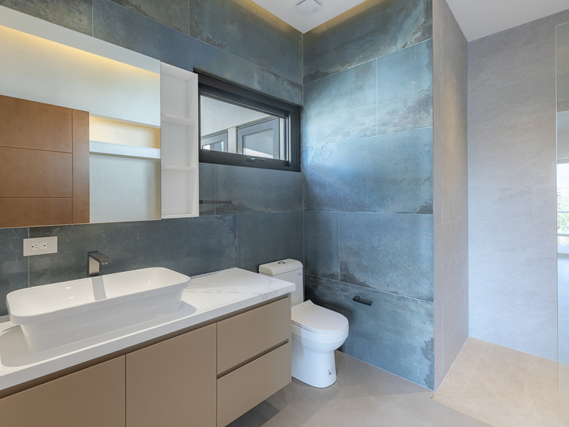 Outside, the expansive terrace and infinity-edge pool blur the lines between home and horizon, creating an idyllic space for relaxation or sunset gatherings. An outdoor gas hookup is ready for a custom BBQ setup, ensuring effortless al fresco dining against the backdrop of Playas del Coco’s golden coastline.