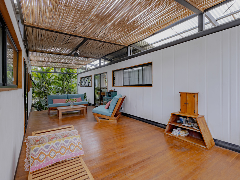 Discover this incredible property, ideally situated on the main road that connects San Isidro with Playa Hermosa. This unique plot features a charming container home with three bedrooms connected with an open space outdoor cozy comfortable lounge area , a kitchen, a bathroom, and a storage room.