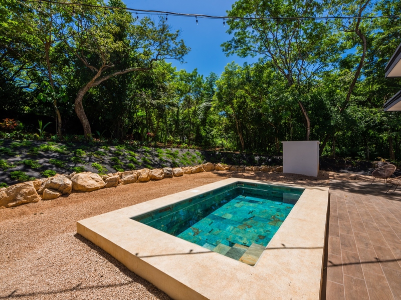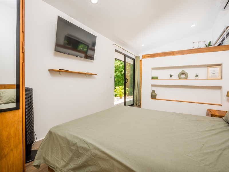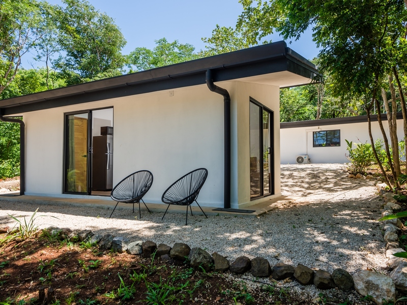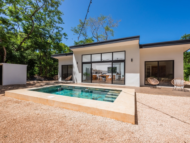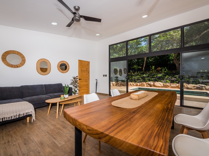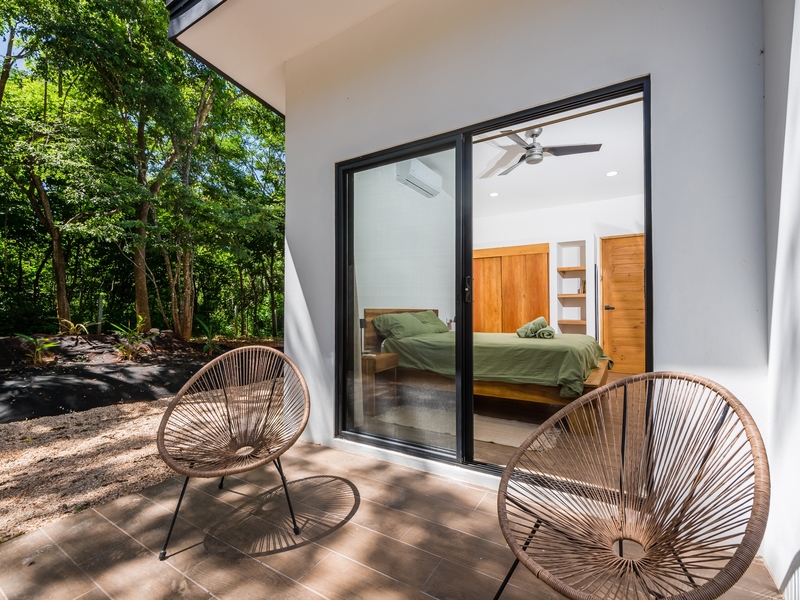 The main house, thoughtfully furnished and move-in ready, features two bedrooms, two bathrooms, a fully equipped kitchen, a living room, and a 112 m² covered terrace. It comes with new Whirlpool appliances, linens, kitchenware, accessories, and high-speed Starlink internet. A private 14 m² pool and mature tropical garden create a relaxed and functional outdoor space.