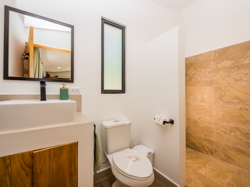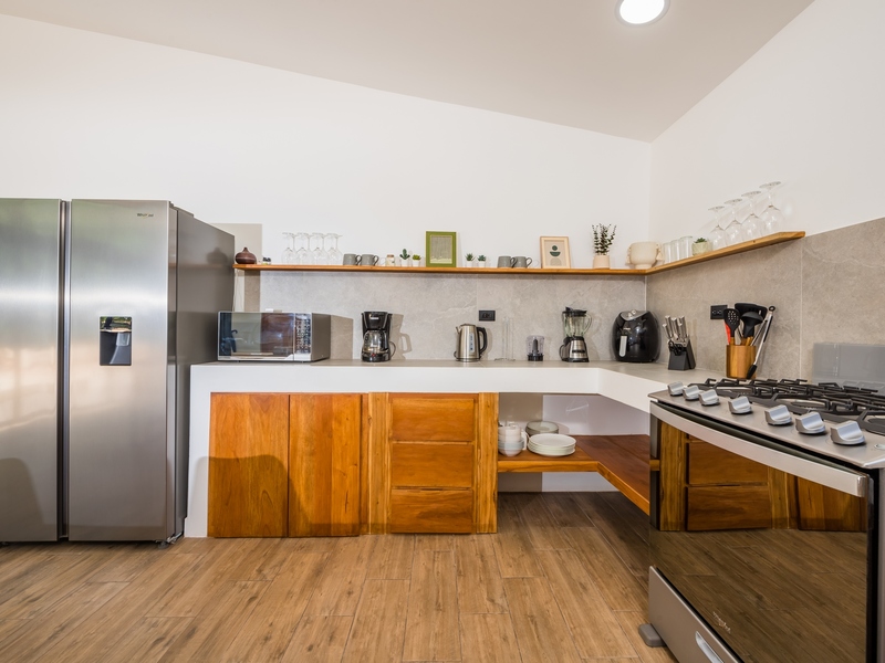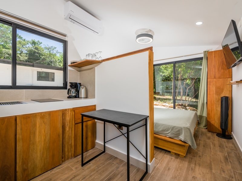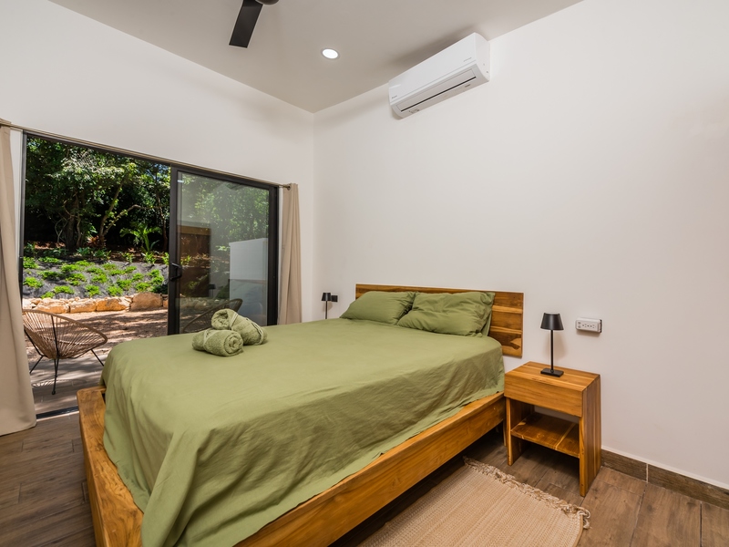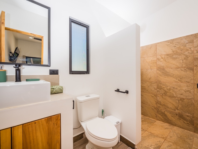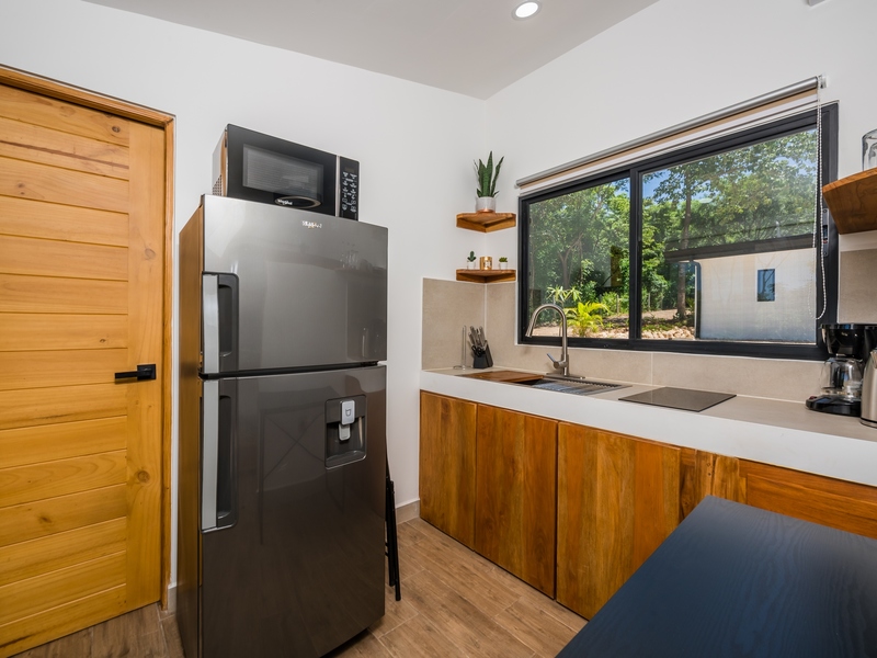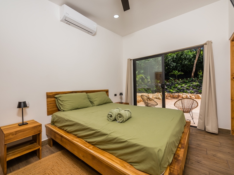 The main house, thoughtfully furnished and move-in ready, features two bedrooms, two bathrooms, a fully equipped kitchen, a living room, and a 112 m² covered terrace. It comes with new Whirlpool appliances, linens, kitchenware, accessories, and high-speed Starlink internet. A private 14 m² pool and mature tropical garden create a relaxed and functional outdoor space.
