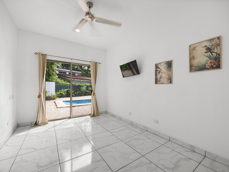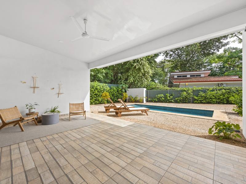 Outside, you'll find a private outdoor space designed for relaxation and entertainment. A spacious patio surrounds a refreshing swimming pool, making it perfect for soaking up the tropical sun or hosting friends and family. An additional water supply system adds an extra layer of convenience and reliability, especially during the dry season.