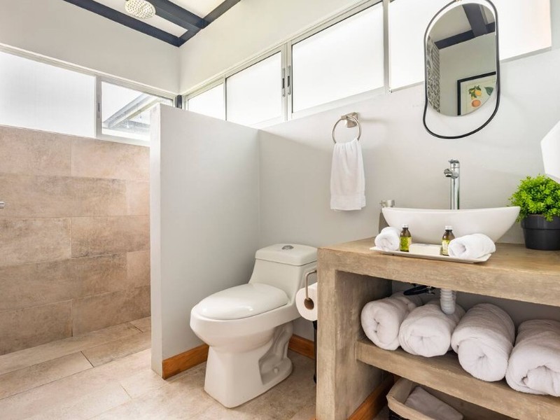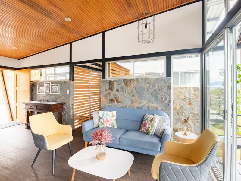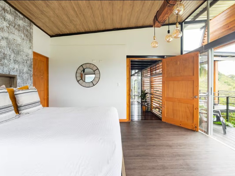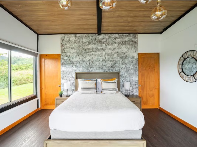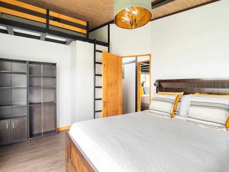 - Third Bedroom: Queen bed, loft with a single mattress, and a private deck overlooking Turrialba scenery.