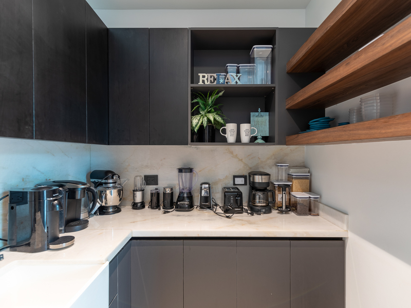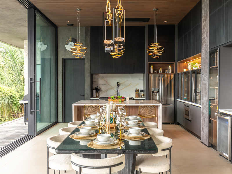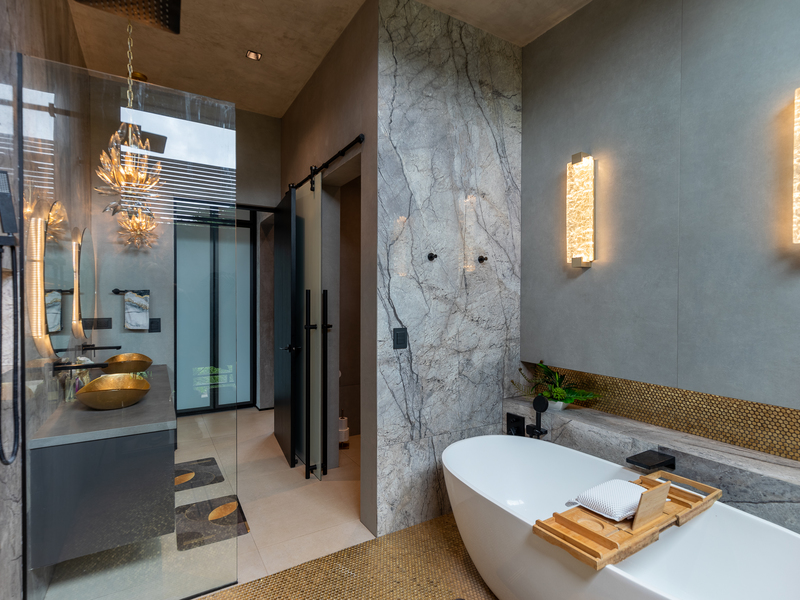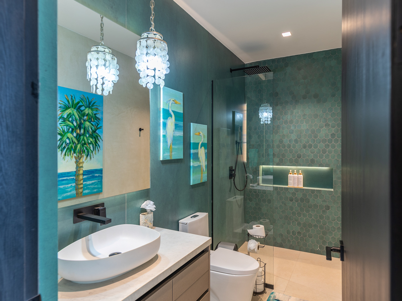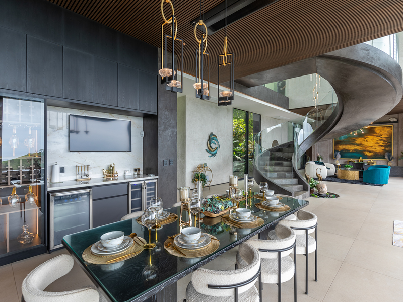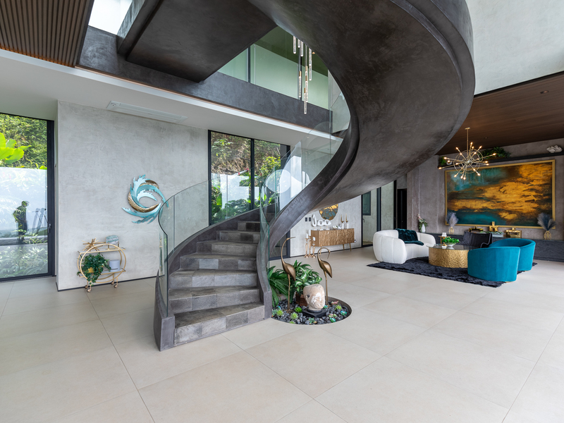 The space This spacious home offers 3 large bedrooms with king-size beds, 3 full bathrooms, 3 half bathrooms, and innovative and functional common areas such as a movie theatre, office space, an equipped fitness room, an outdoor yoga deck, expansive cooking and outdoor lounge areas, and much more. Enjoy breathtaking views from the sweeping infinity pool along with every room of the house. An eye-popping spiral staircase, floor-to-ceiling windows, an elevator as well as thoughtful furnishings and design all serve to elevate every moment of your stay.