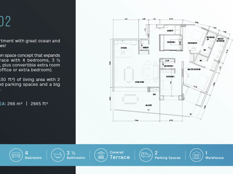With 226 m² (2,430 ft²) of elegant interior living space and a total area of 266 m² (2,865 ft²), this residence includes two secure underground parking spaces and a generous storage unit. Enjoy the perfect blend of style, comfort, and functionality in one of the most desirable coastal locations.