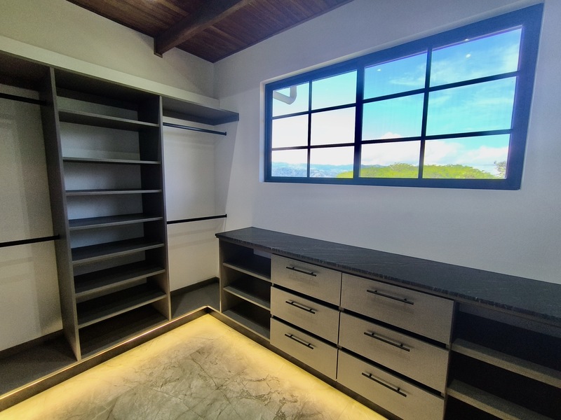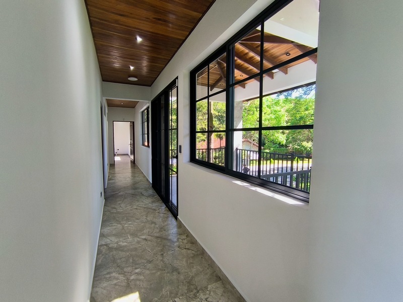 Experience the perfect blend of luxury, comfort, and nature in this impressive two-story home, set on a fully usable 7,000 m² (1.8 acres) lot. Surrounded by beautifully landscaped gardens, fruit trees, and iconic Guanacaste trees, the property offers tranquility while being just 10 minutes from Atenas and 5 minutes from Route 27, with easy access to Central Valley cities, the international airport, and Pacific coast beaches. Built in 2009 and fully renovated in 2025 with premium materials, the main floor features an open-plan living area, gourmet kitchen with pantry, laundry room, two-car garage, and a large bedroom with private en-suite and walk-in closet. Upstairs, three bedrooms each have en-suite bathrooms and walk-in closets with stunning mountain views. Smart home features, 14 security cameras, air conditioning, ceiling fans, and a naturally cool tiled roof enhance comfort. Outdoors, enjoy a Coralina-stone pool, terraces, and a guest/staff quarters.