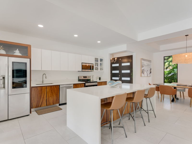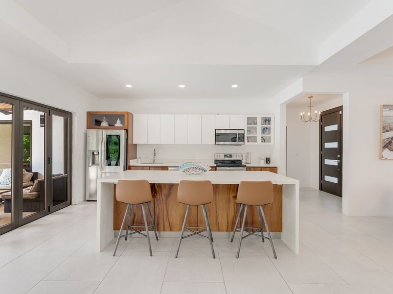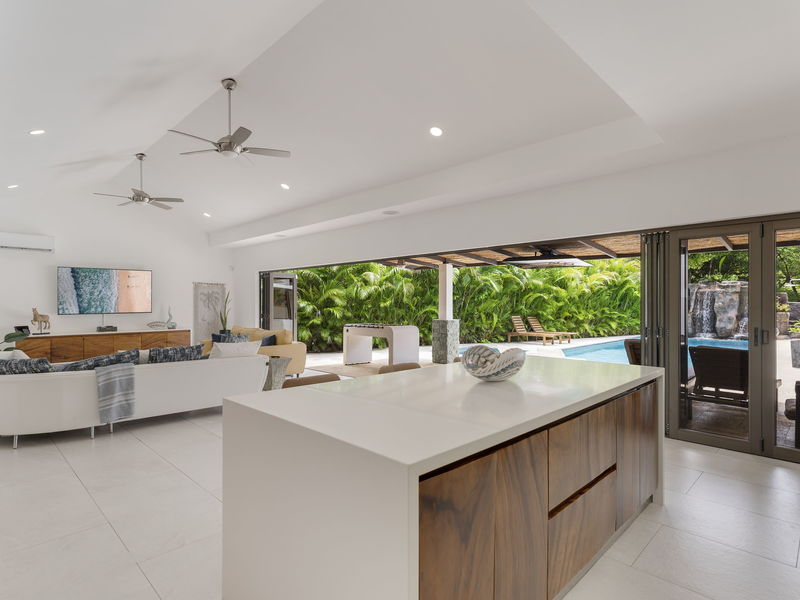 As you arrive, a magnificent tree welcomes you, setting the tone for the tranquil and private setting. Step inside and you’re immediately greeted by open-concept indoor-outdoor living. Expansive glass doors slide away to connect the sleek interior to a lush backyard retreat, creating a perfect flow for entertaining.