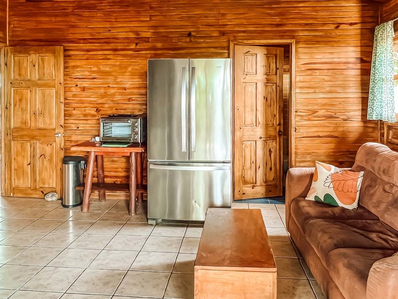 The second home is designed for relaxation and convenience, featuring a comfortable bedroom, a cozy living room, and a large outdoor kitchen and patio area perfect for dining al fresco while enjoying the surrounding natural beauty. A separate laundry and storage area adds to the home’s practical appeal.