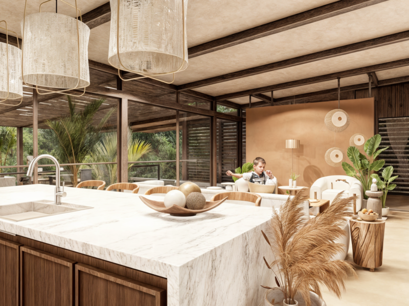 Jardín Eterno is thoughtfully designed to celebrate and blend with its natural surroundings. At the heart of the home lies a lush central garden—a serene sanctuary that connects every space. This unique courtyard not only serves as a peaceful retreat but also enhances privacy, encourages natural airflow, and seamlessly integrates indoor and outdoor living.
