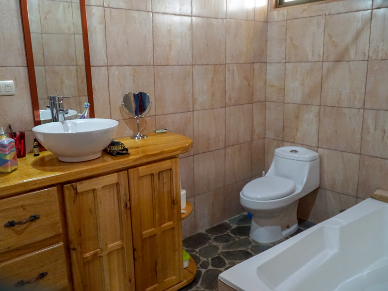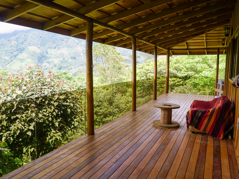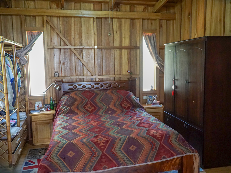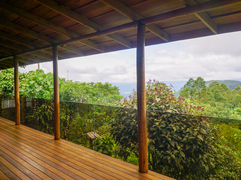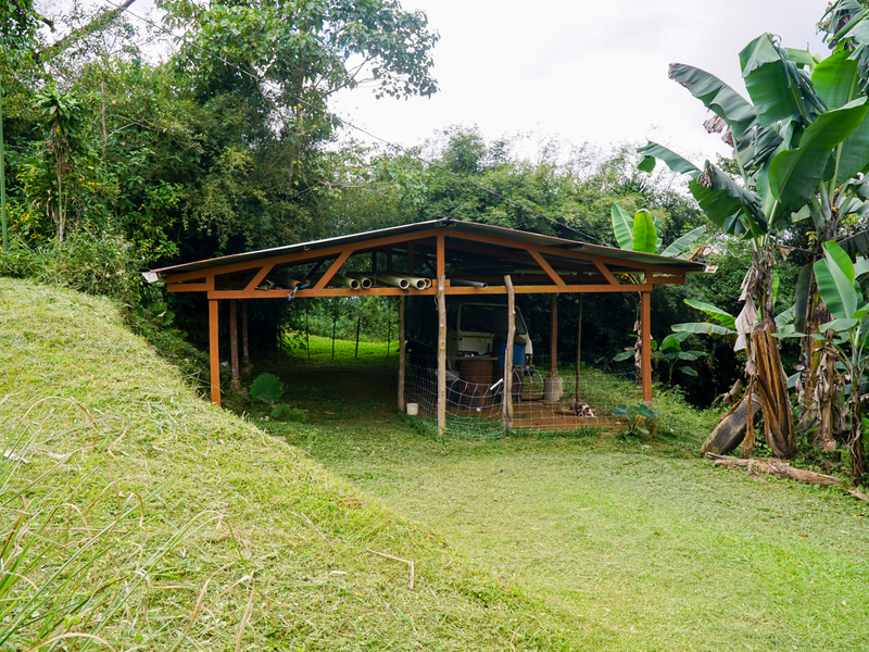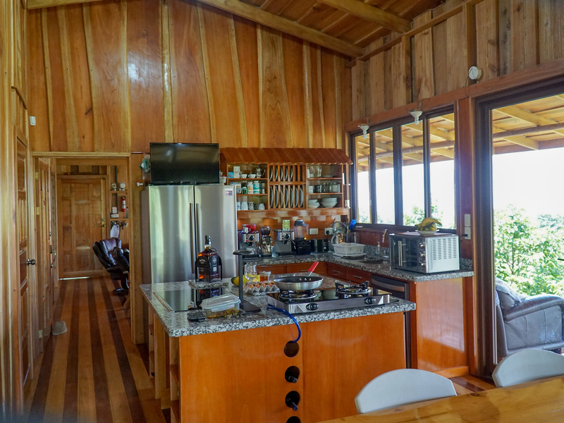 The main residence is a warm and inviting wooden home constructed from locally sourced timber, designed with sustainability in mind. Features include solar-heated water, a biodegester for wastewater treatment, and oversized rain gutters that create a graceful natural fountain effect during heavy rains. The home blends rustic mountain character with modern eco-friendly amenities.