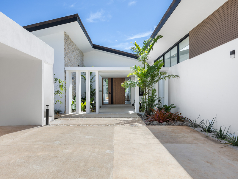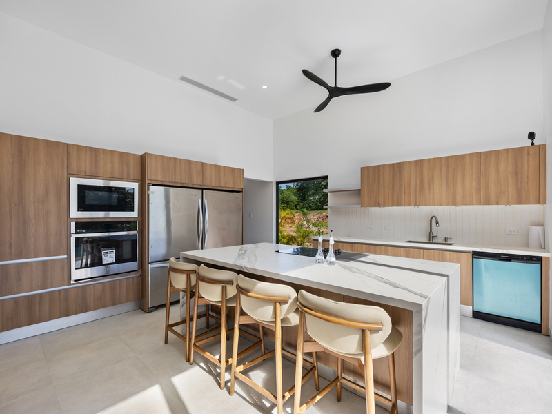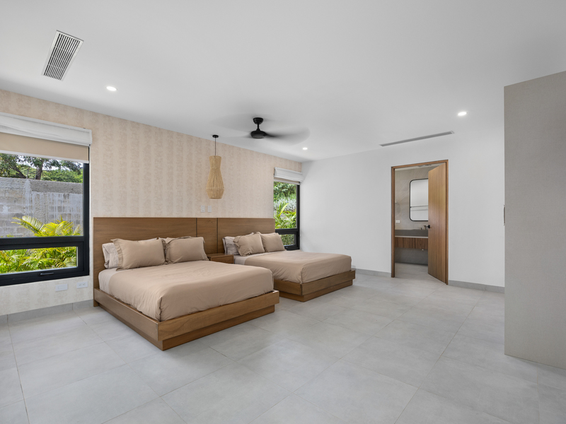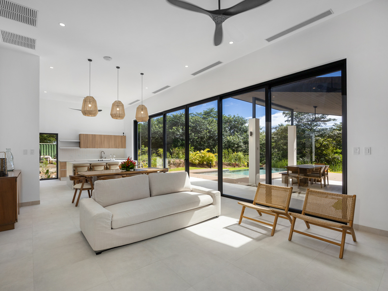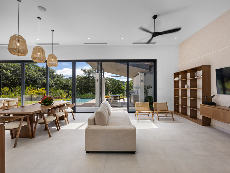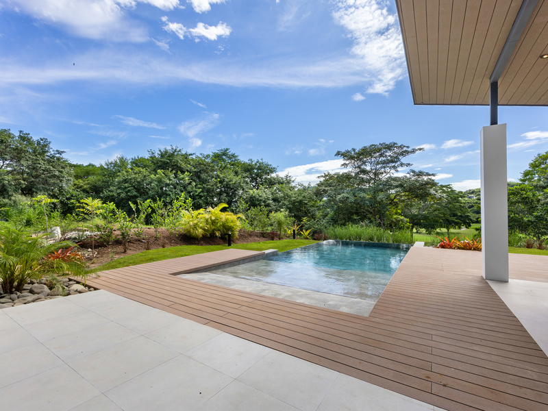 This brand-new Casa Aguasalada is a magnificent opportunity to own a piece of paradise! This luxurious residence is located in front of hole #16 of the renowned Robert Trent Jones II Golf Course at Reserva Conchal in the closest community to the beach. Aguasalada is a stunning 4-bedroom, 5 full bathroom and 2 half bath home that boasts 4769 sq ft of living space on 1321.56m2 of land and offers a modern tropical design with teak accents throughout, providing ample room for entertaining guests and family. The bedrooms are separated in their own wing, ensuring privacy, and the common areas are open and spacious. Each bedroom has its own ensuite bathroom so every guest is happy!