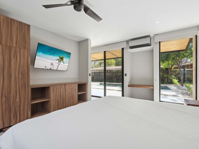 Discover Casa Las Baulas a luxurious coastal haven just 100 meters from the golden sands of Playa Grande. This impeccably designed home offers four spacious bedrooms, three with ensuite bathrooms, including a serene master suite featuring dual vanities and spa-like comfort. A modern, open layout separates the kitchen and living area from the private bedroom wing, offering both functionality and privacy. High ceilings and premium finishes create a bright, elegant atmosphere throughout, while the gentle sound of nearby waves provides a constant reminder of your unbeatable beachside location.