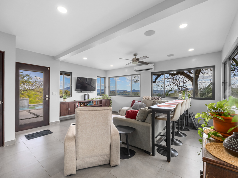 Nestled in the prestigious gated community of Playa Grande, Corona del Cabo 4 is a rare opportunity to own two beautifully crafted homes on a sprawling 1.25 acre 5,081 m² lot with paved access throughout. The 1,400 sq ft main home showcases bright interiors with large windows that frame panoramic mountain and partial ocean views. The open concept kitchen offers generous counter space and storage, ideal for culinary enthusiasts. Upstairs, you'll find two spacious ensuite bedrooms and a third floor terrace perfect for soaking in the coastal scenery. Step outside to a tropical oasis featuring a stunning infinity-edge pool with waterfall, a spacious patio surrounded by lush gardens, and a gas BBQ area ideal for relaxing or entertaining under the Costa Rican sun.